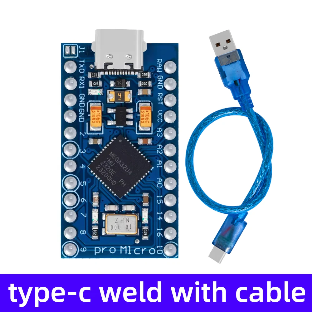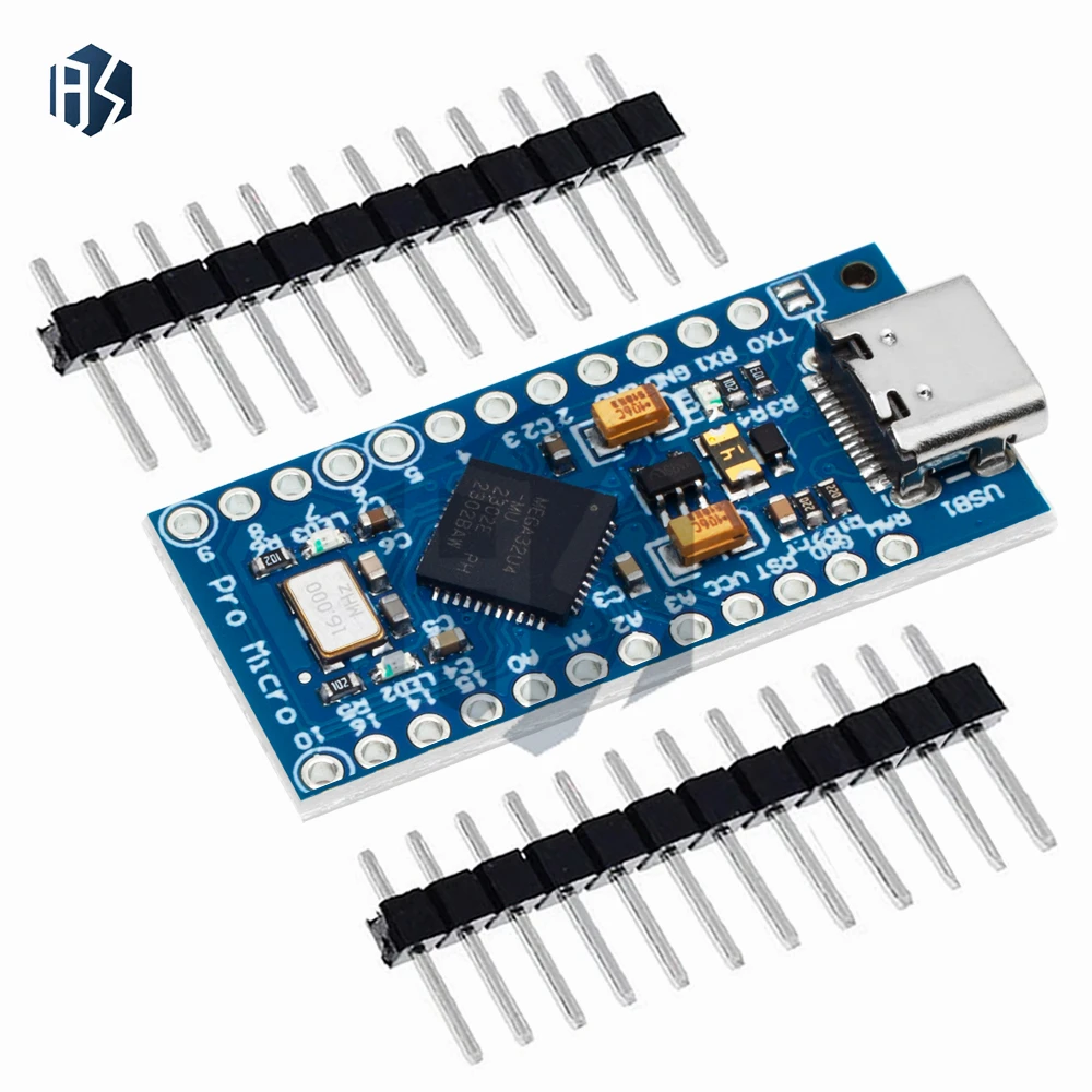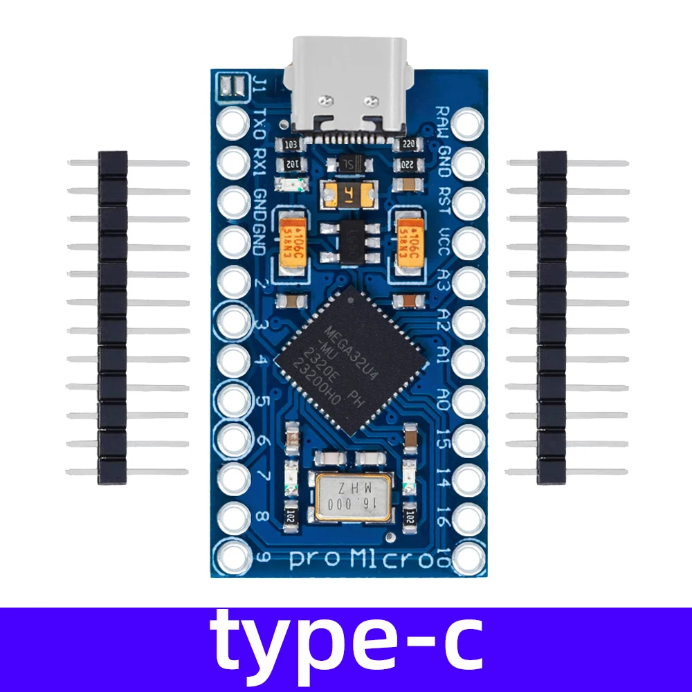Pro Micro ATmega32U4 5V 16MHz remplacer ATmega328 pour Arduino TYPE-C avec en-tête de broches à 2 rangées pour Interface Mini Usb Leonardo Pro