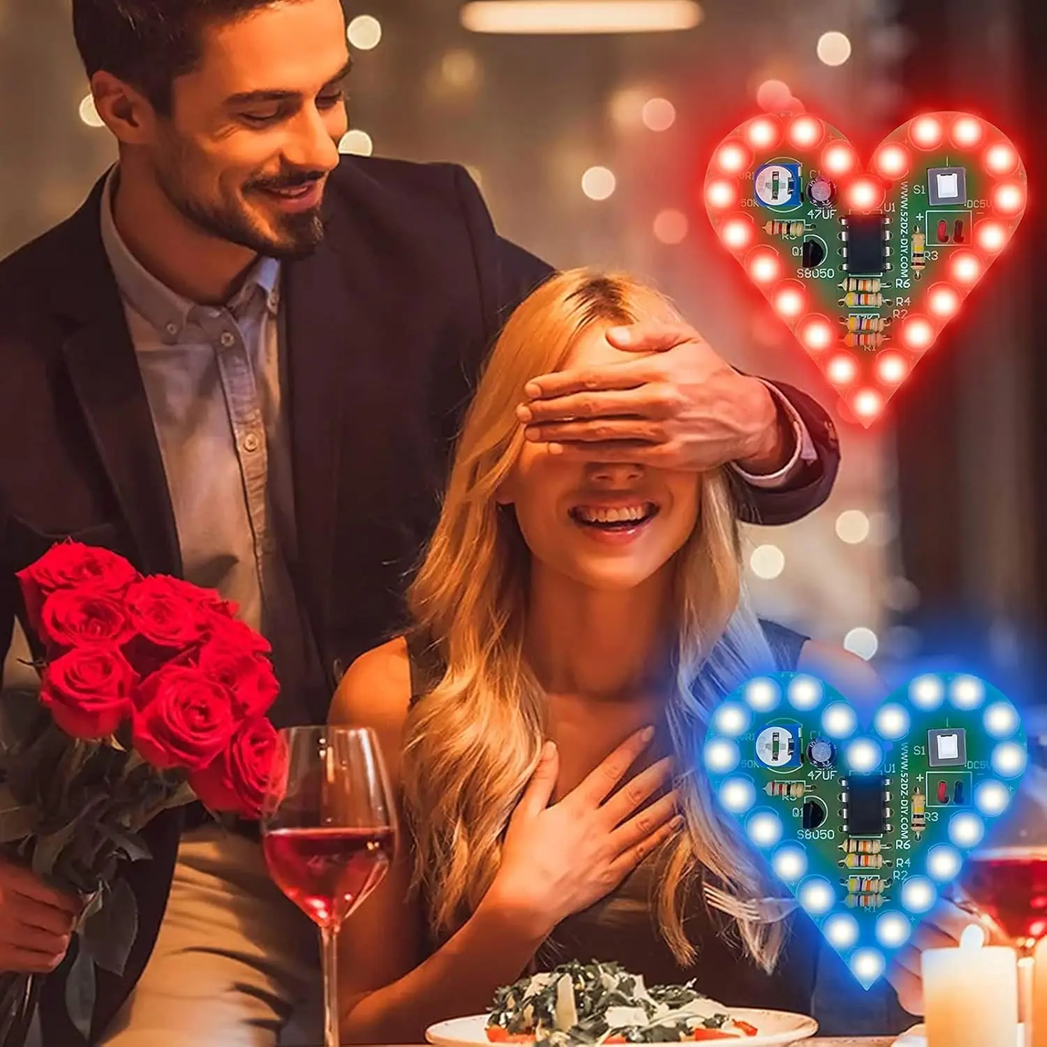 [Kits électroniques de bricolage LED en forme de cœur] Ces kits de pratique de soudure se composent de 4 magnifiques kits électroniques en forme de cœur, comprennent 88 lumières LED bleues/rouges/verres/blanches, lorsque vous terminez de souder et de mettre sous tension, les lumières LED s'allumeront et clignoteront comme respirer