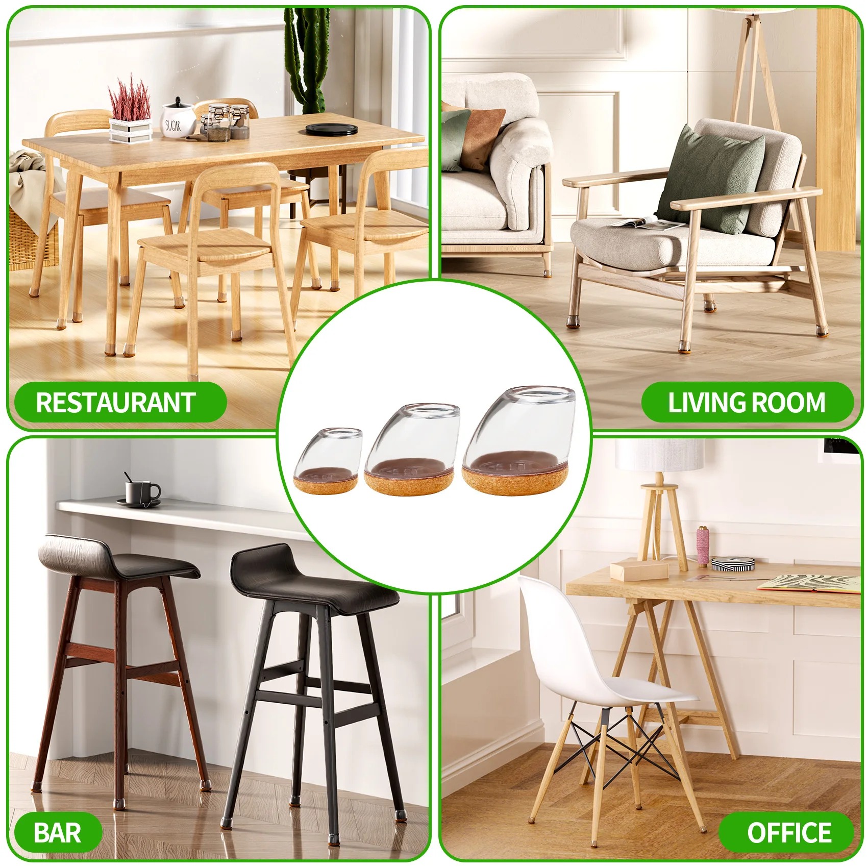 Protecteur de sol pour pieds de chaise, 8 pièces, couvre-pieds épais, coussinets en feutre, meubles en Silicone 15 ° -25 ° Les pieds de table protègent les sols en bois dur