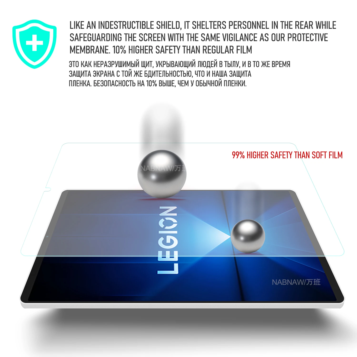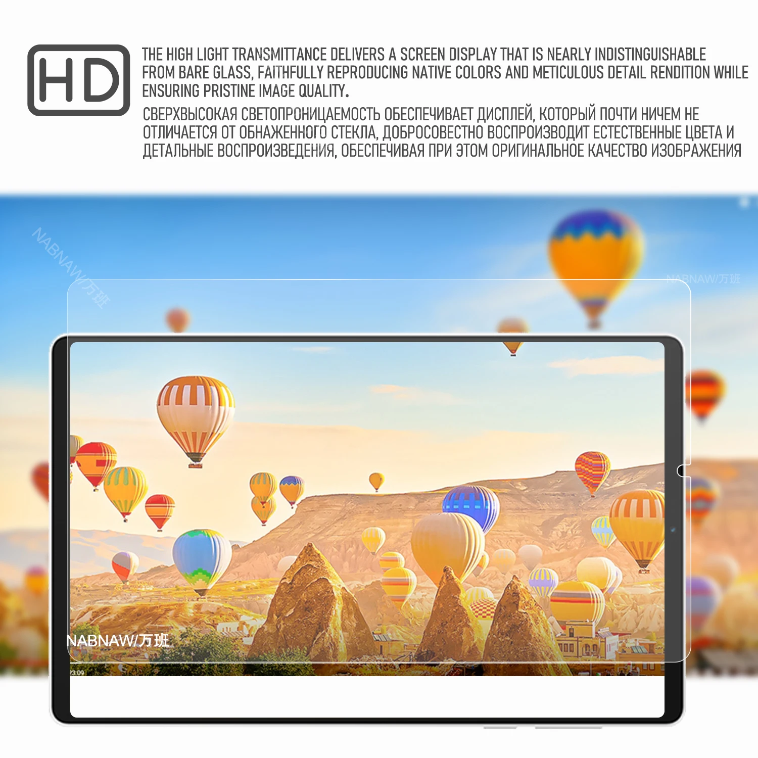 -- déchirez et jetez le film de sécurité du protecteur d'écran, calibrez la position du protecteur d'écran et de l'écran de la tablette et posez-le lentement.