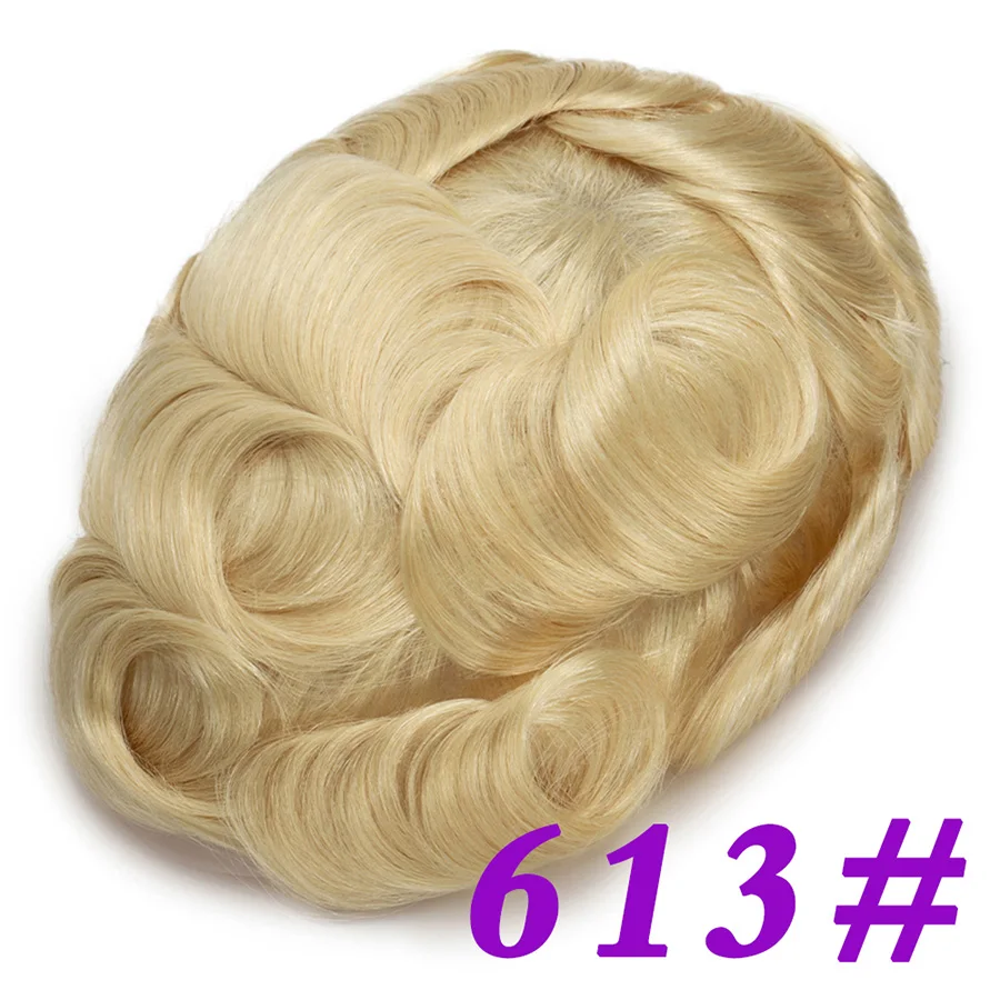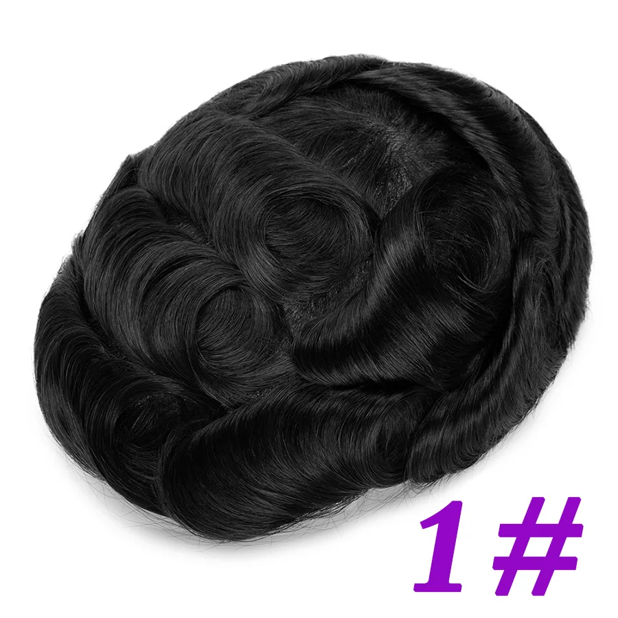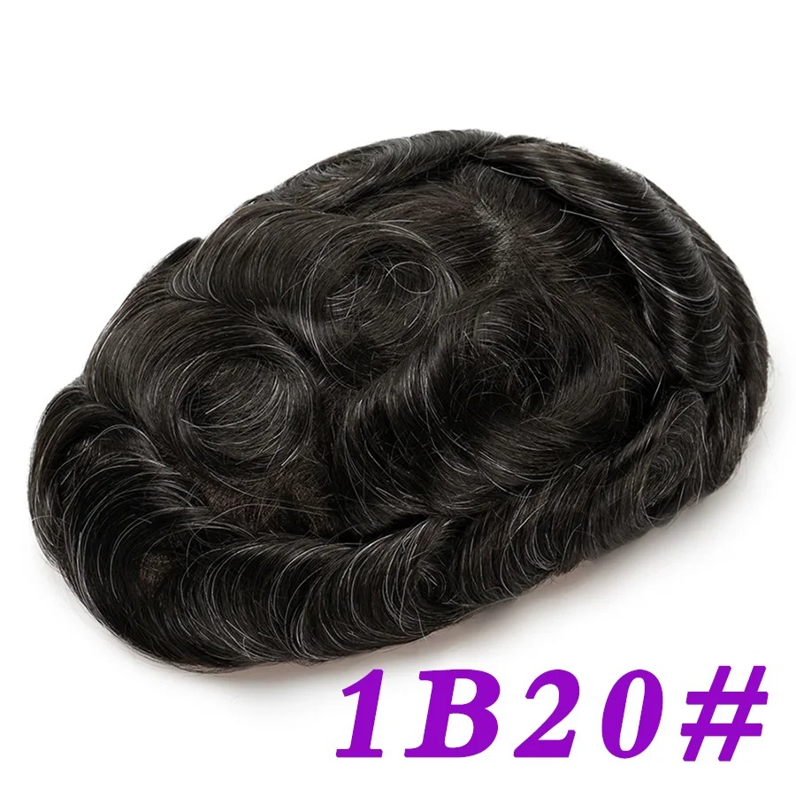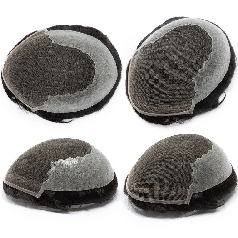 Prothèse capillaire avec dentelle suisse et PU pour homme, toupet 100% cheveux humains, perruque masculine prothétique, unité système de remplacement de cheveux humains Remy, base Q6