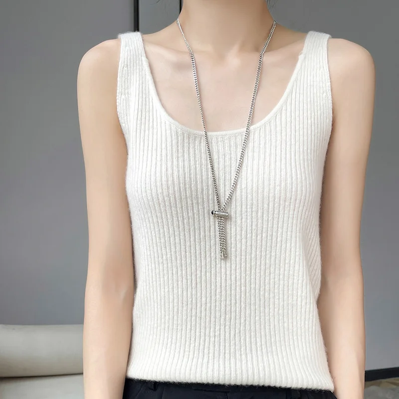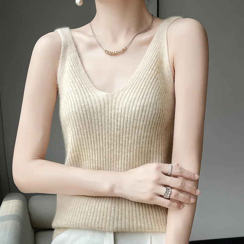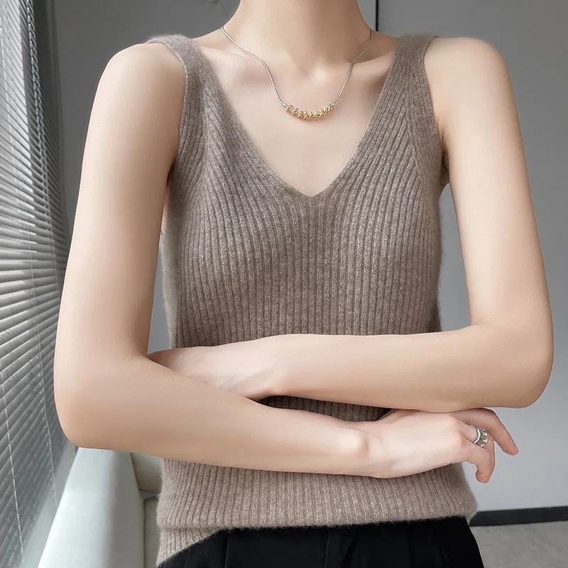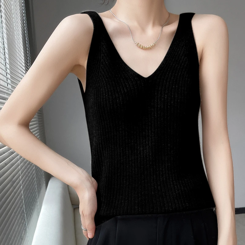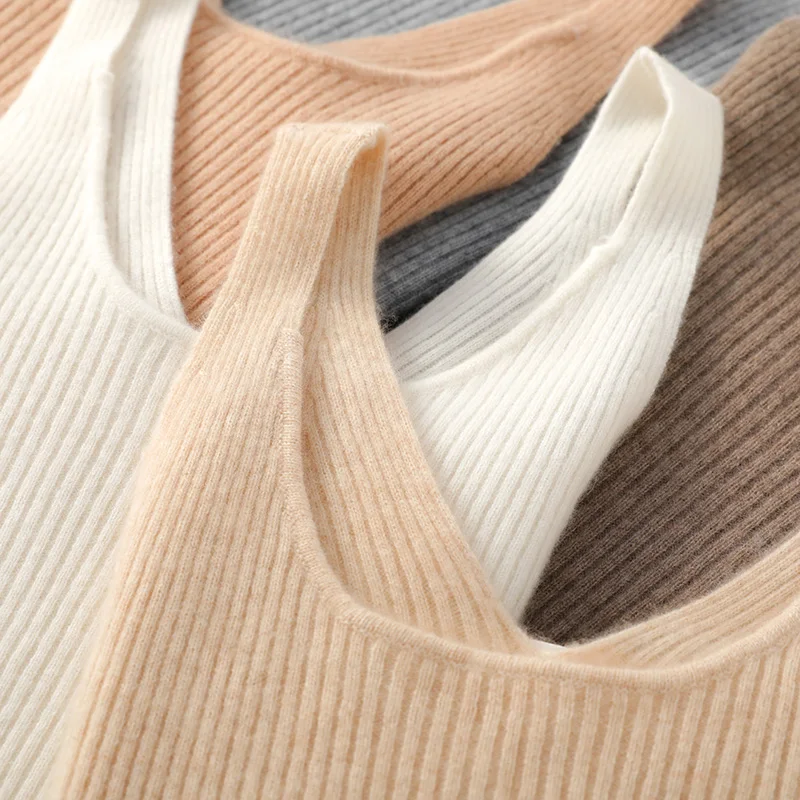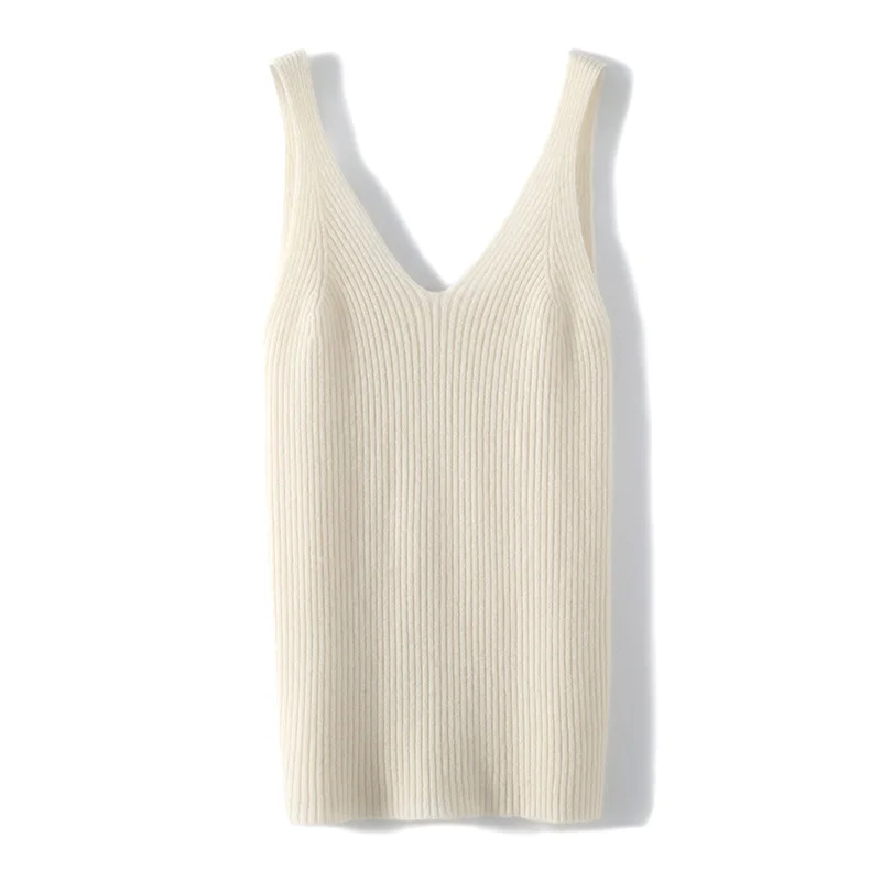 Pull à bretelles en laine mérinos pour femme, col en V, coupe couvertes, haut avec glaçage fin, solide, 100%