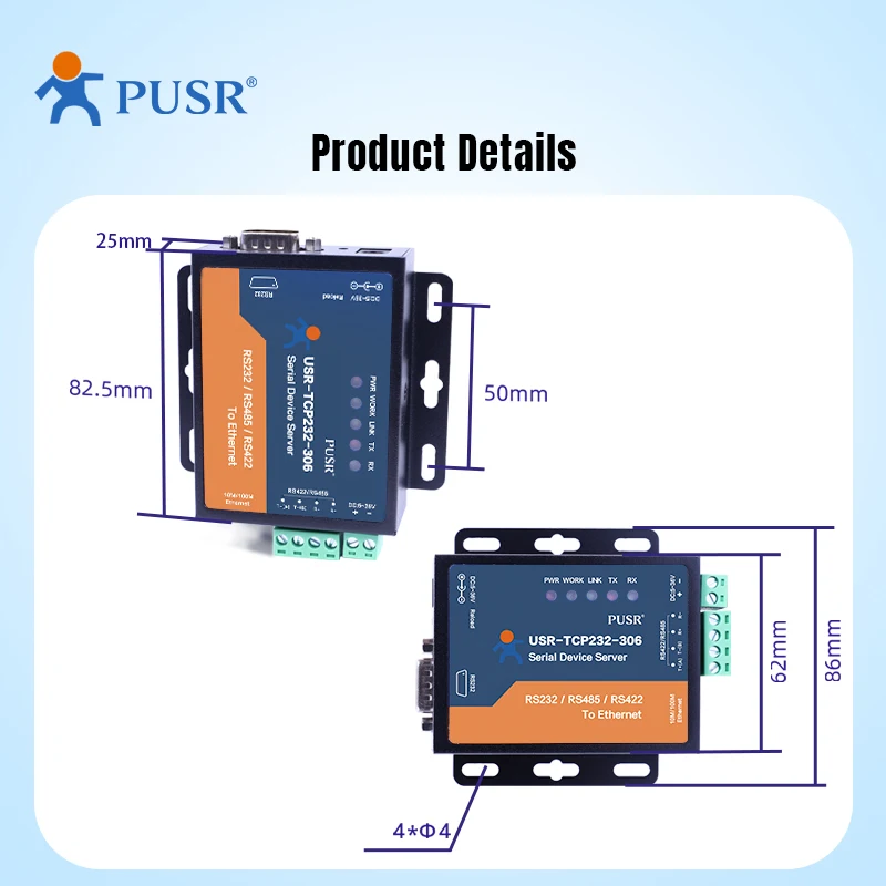 Pusr Rs232 Rs485 Rs422 vers Ethernet serveur de périphérique série convertisseur série Tcp Ip Modbus passerelle usr-tcp232-306