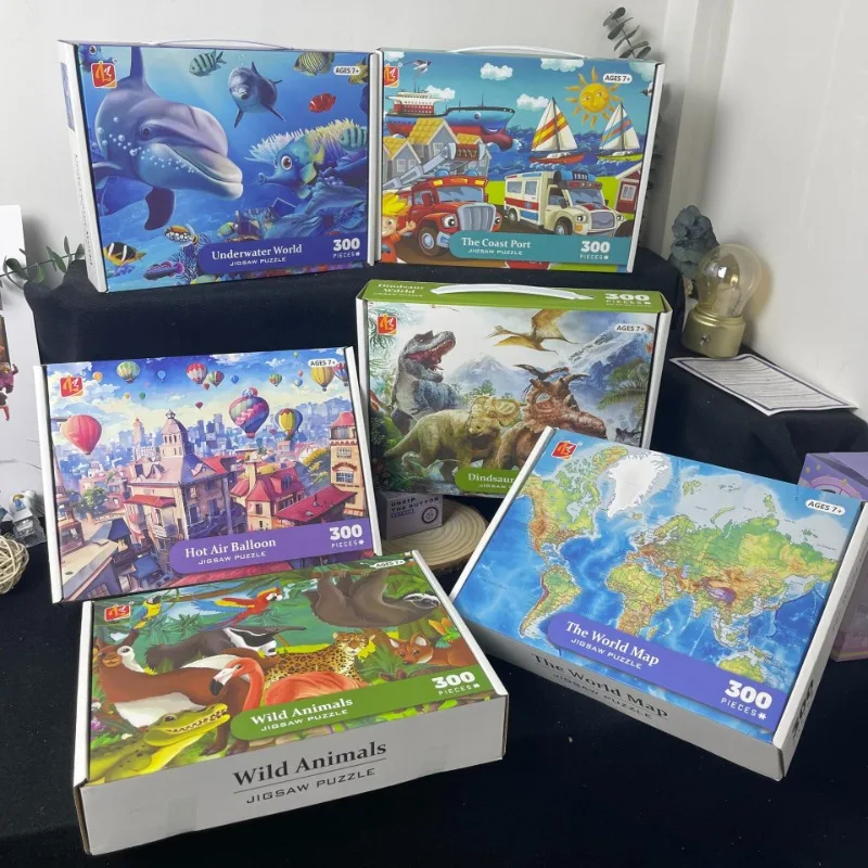 Puzzle en papier 300 pièces-monnaie sous-marin dinosaure montgolfière carte du monde