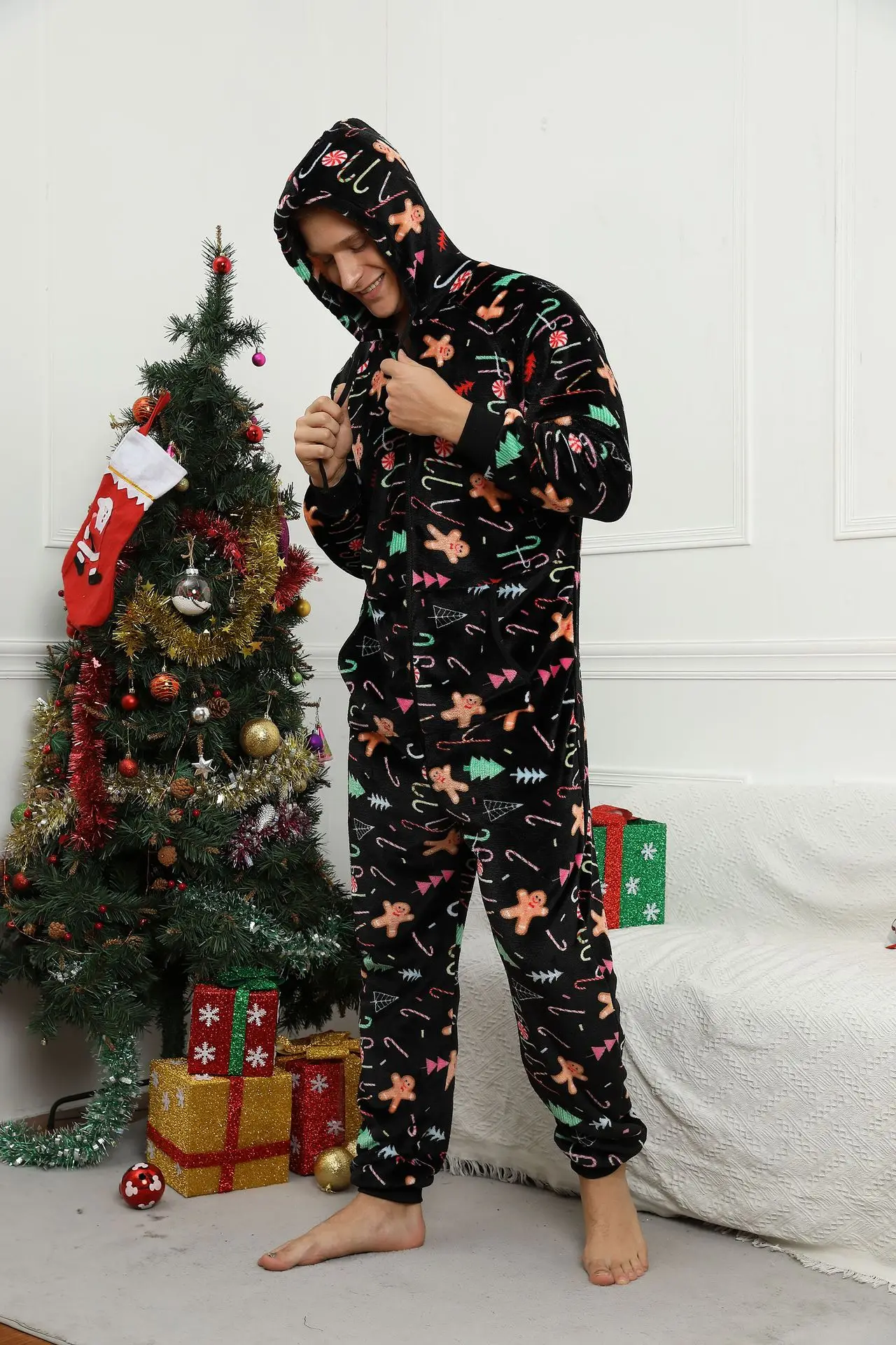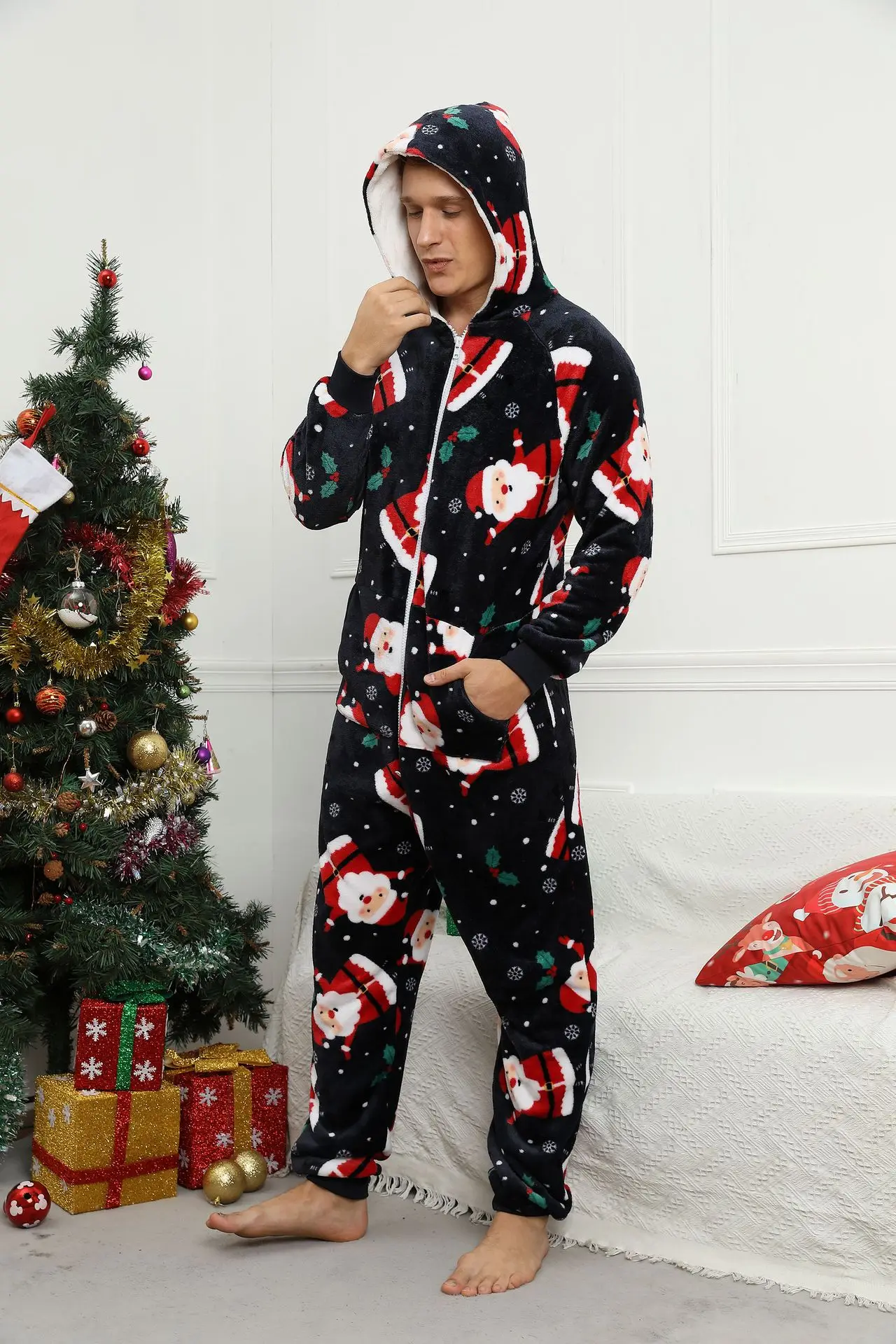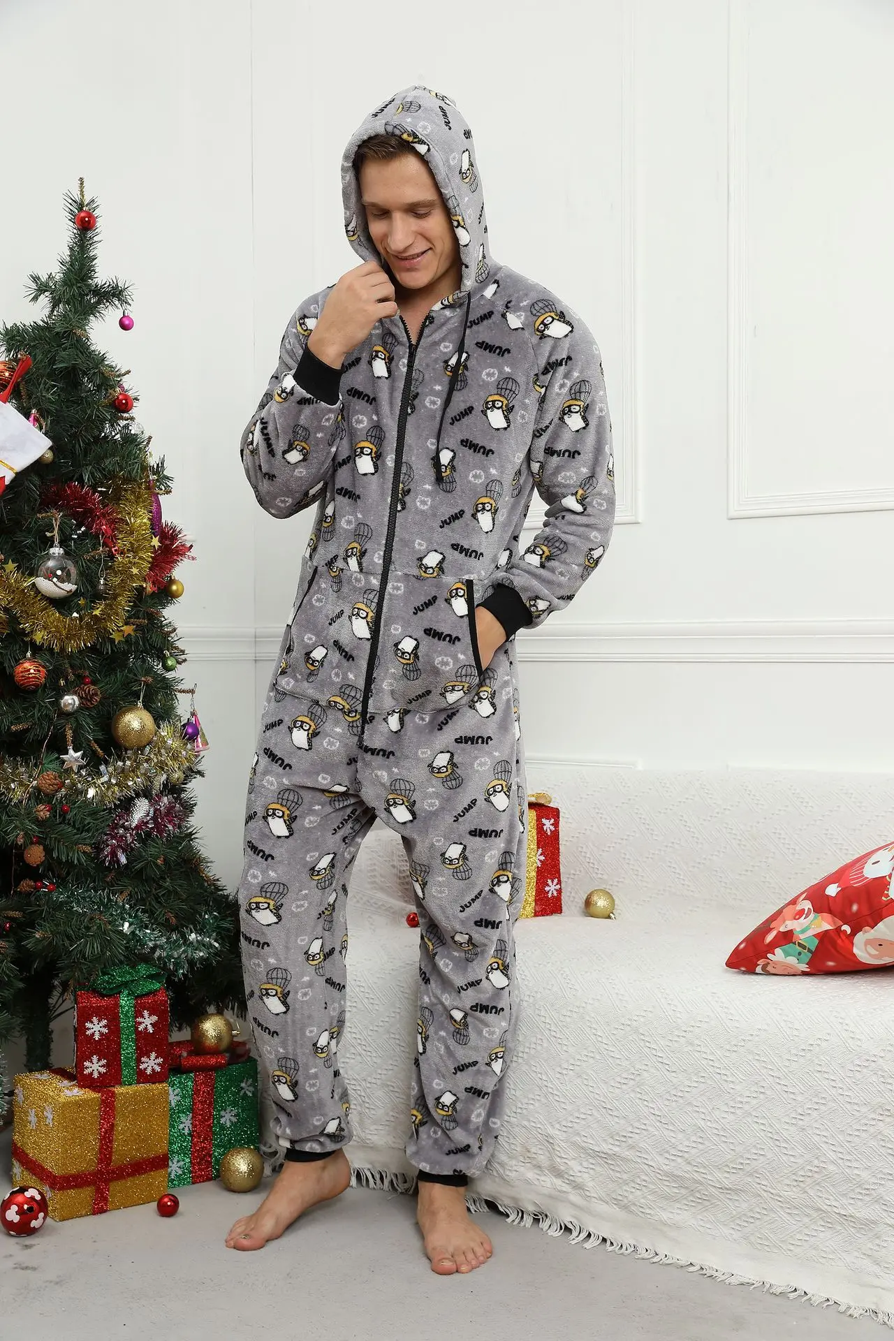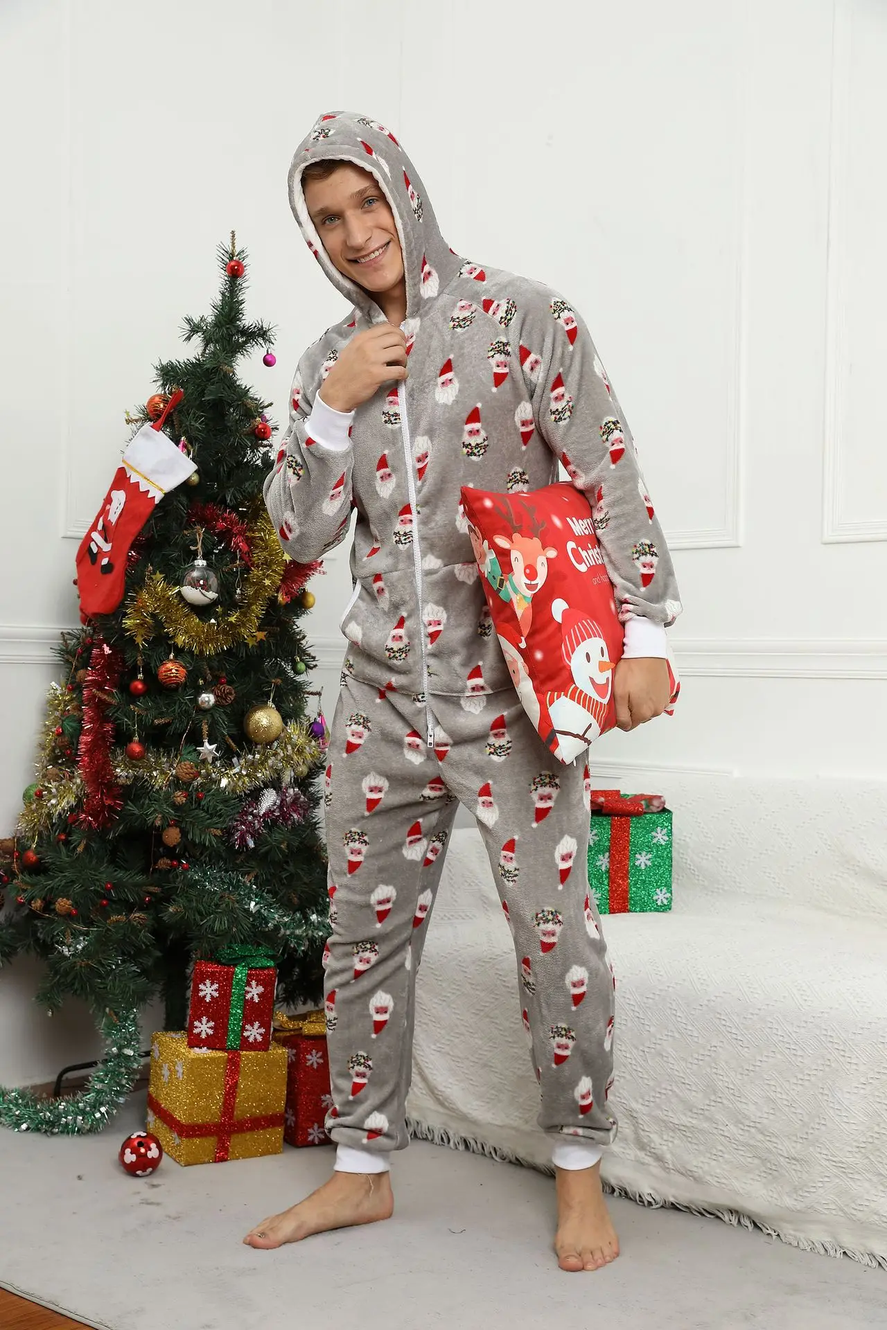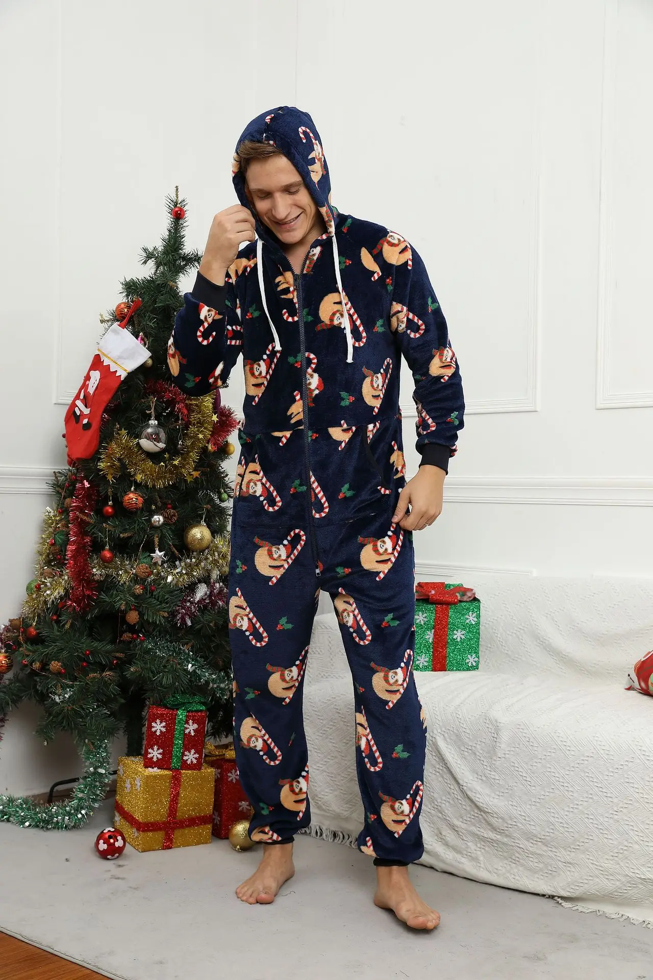 Pyjama de Noël pour homme, combinaison adulte, vêtements de nuit chauds, tenue de glouton, festival, fête, imprimé imbibé, unisexe, hiver