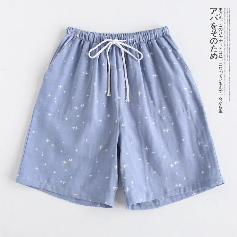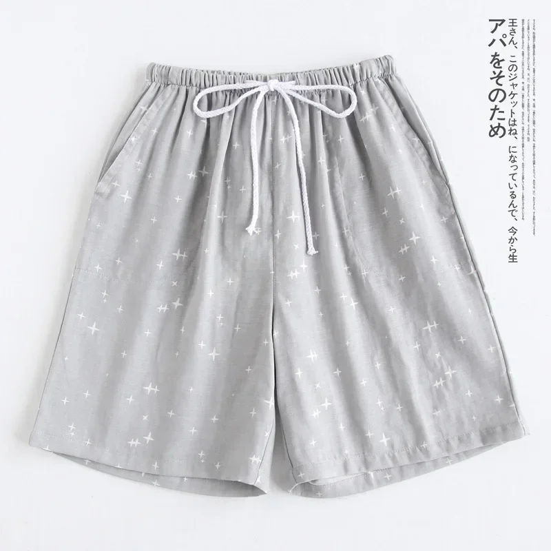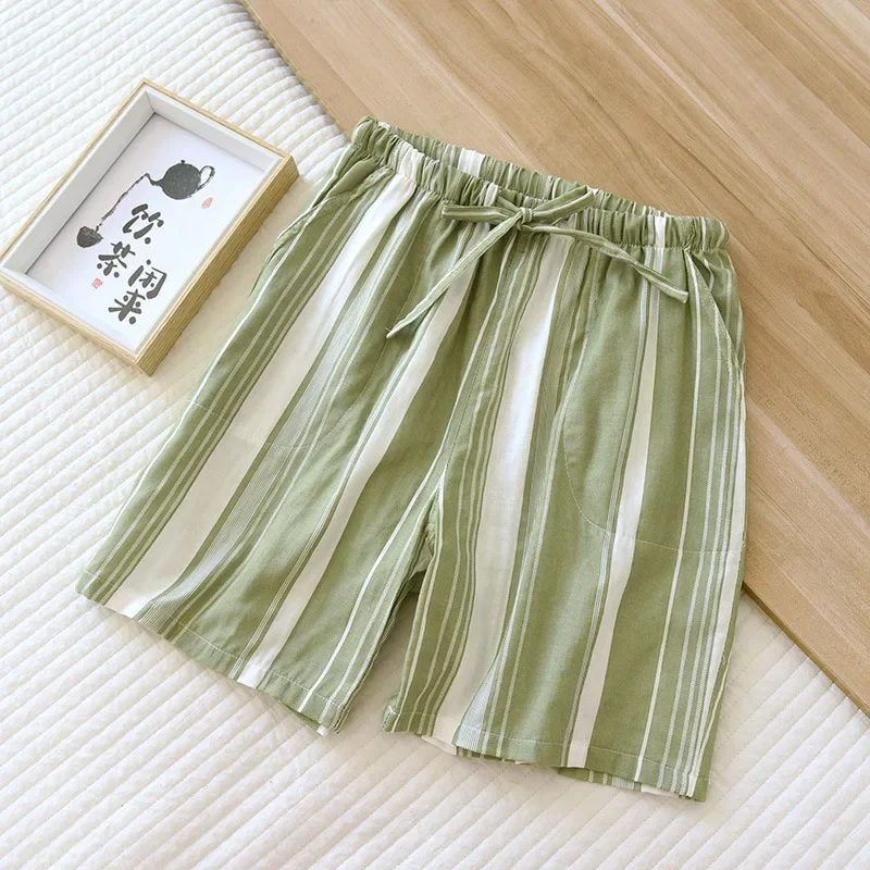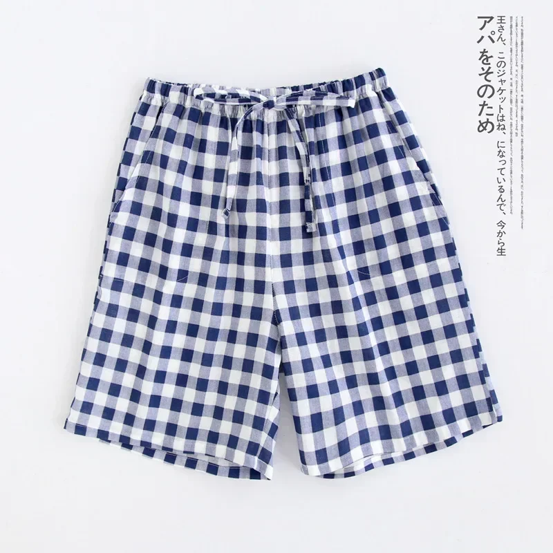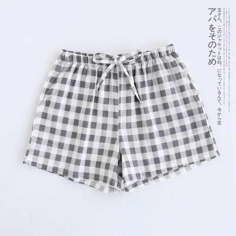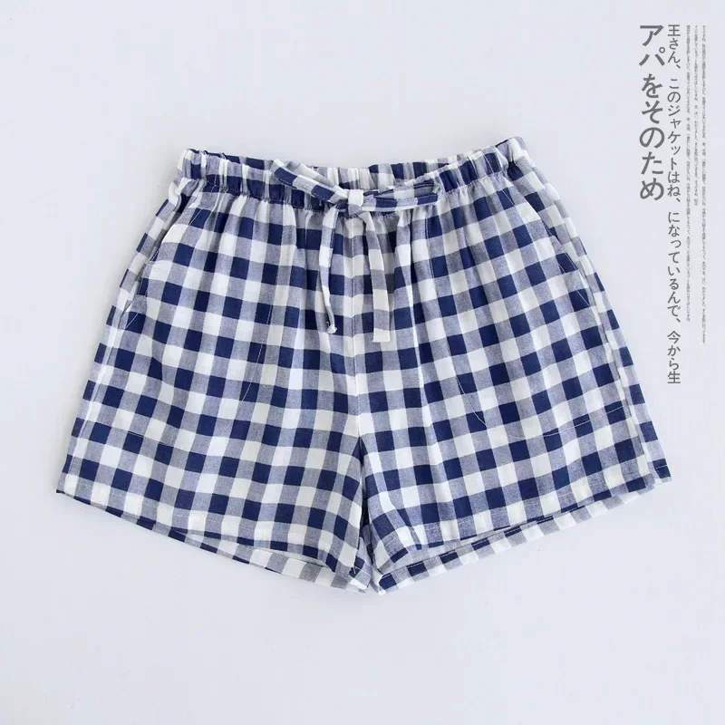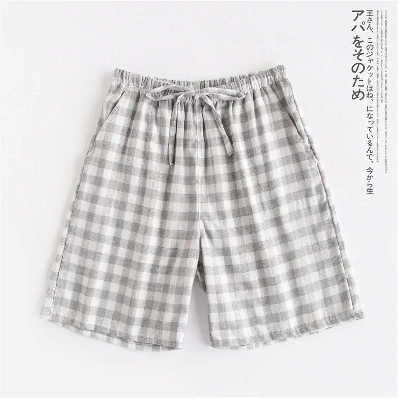 Pyjama d'été en gaze de coton pour Couple, short de style japonais, simple, taille élastique, décontracté, grande taille, treillis, pantalons de maison pour hommes et femmes