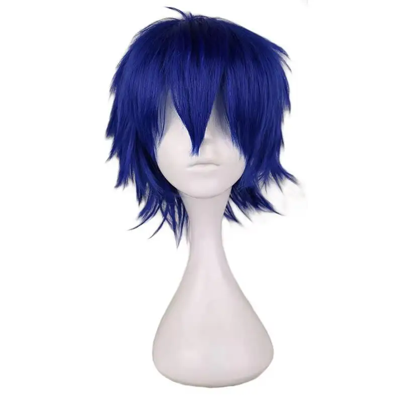 QQXCAIW hommes bleu foncé court Costume Cosplay perruque garçons 30 Cm résistant à la chaleur synthétique cheveux perruques