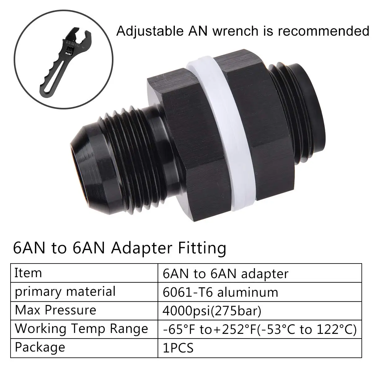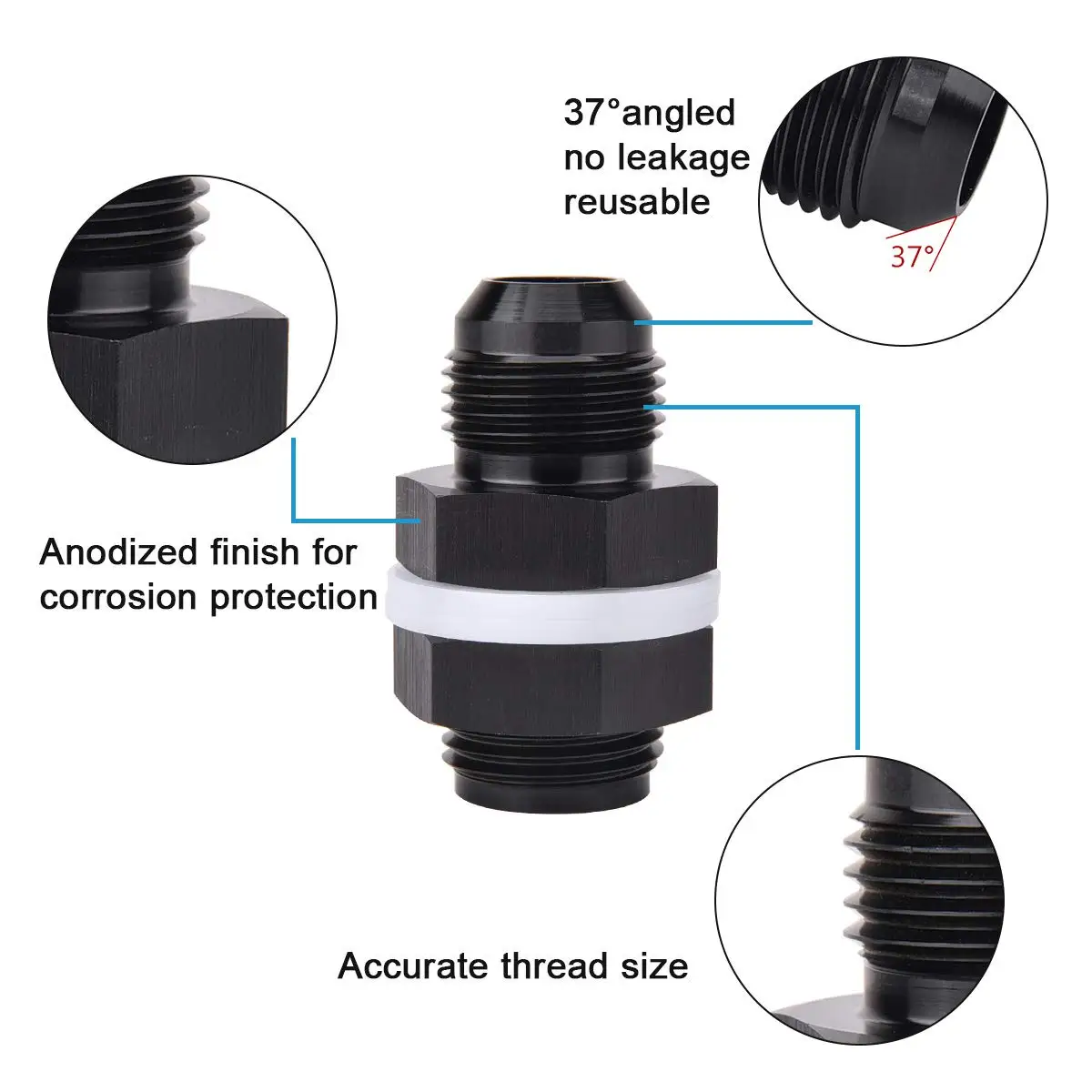 Raccord de cloison de pile à combustible en aluminium AN6 AN8 AN10 Accessoires Adaptateur de cloison de pile à combustible noir