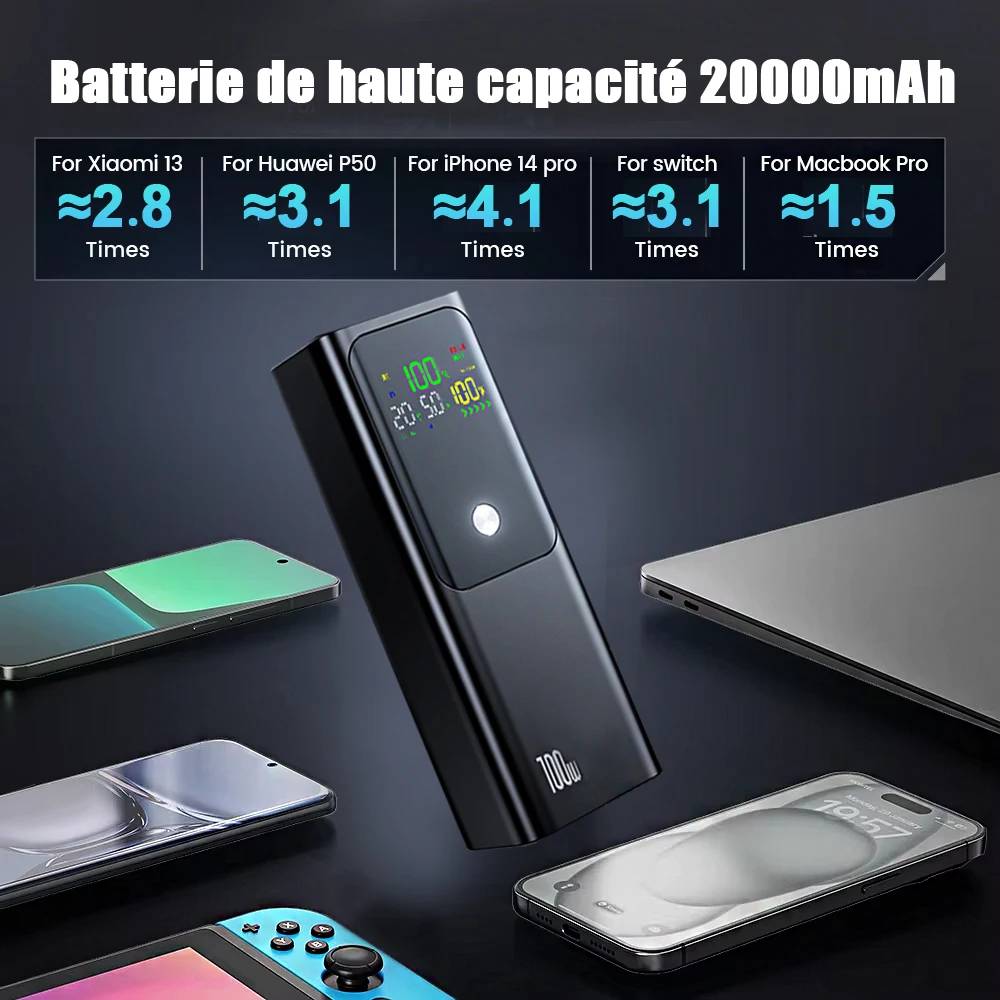 Grande capacité de 20 000 mAh, autonomie de la batterie sans souci.