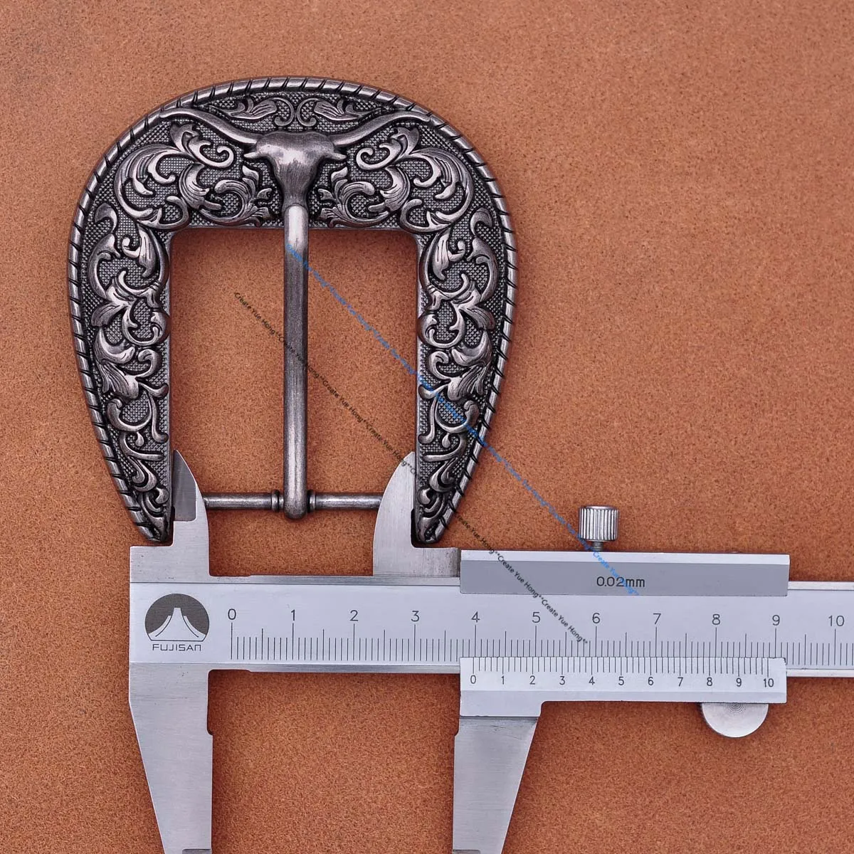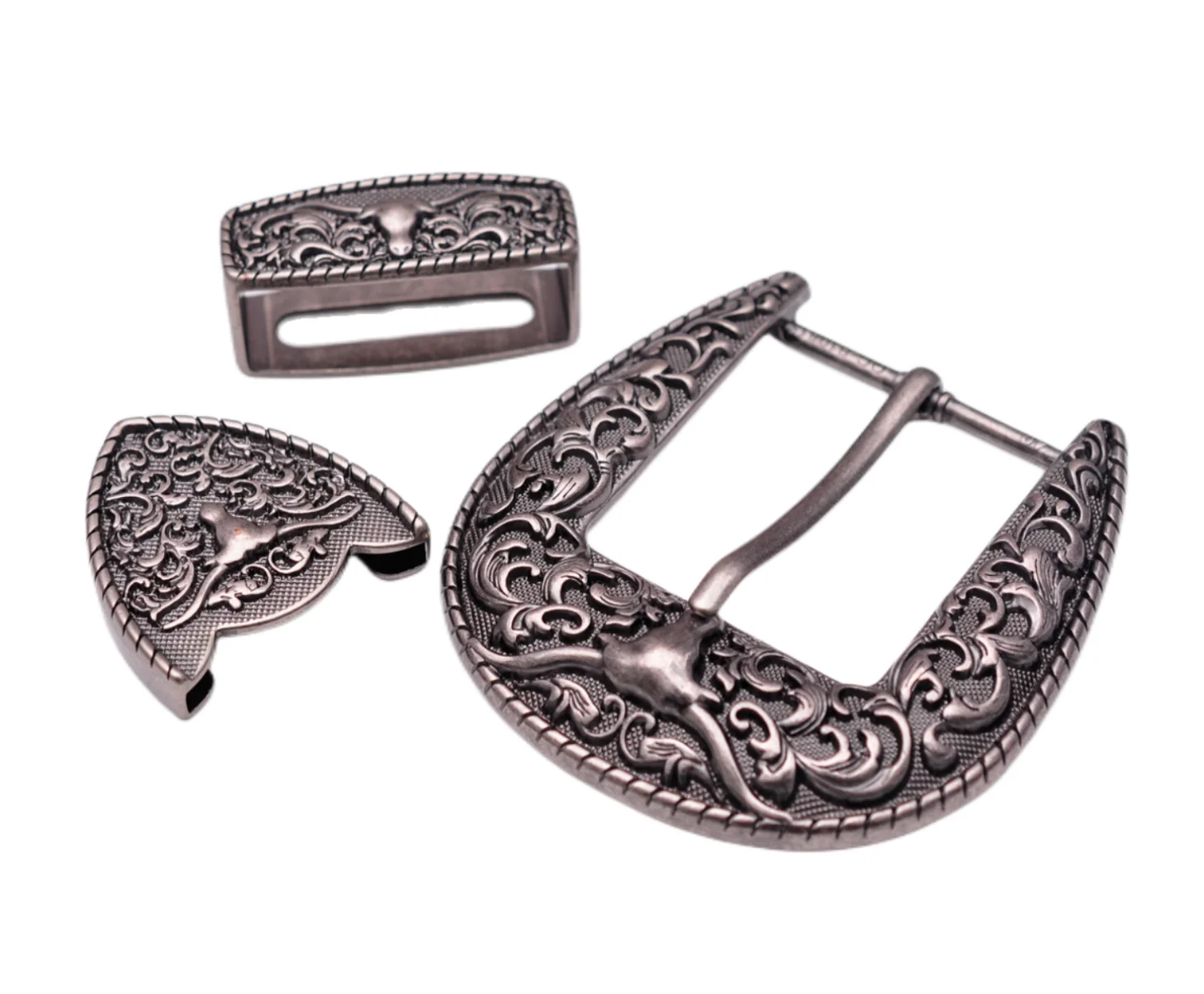 Rapbathing-Ceinture florale argentée antique, Western Cowboy Longhorn Bull, SKhydrRodeo, Structure unisexe, Convient à la sangle de 40mm, Ensemble de 3 pièces