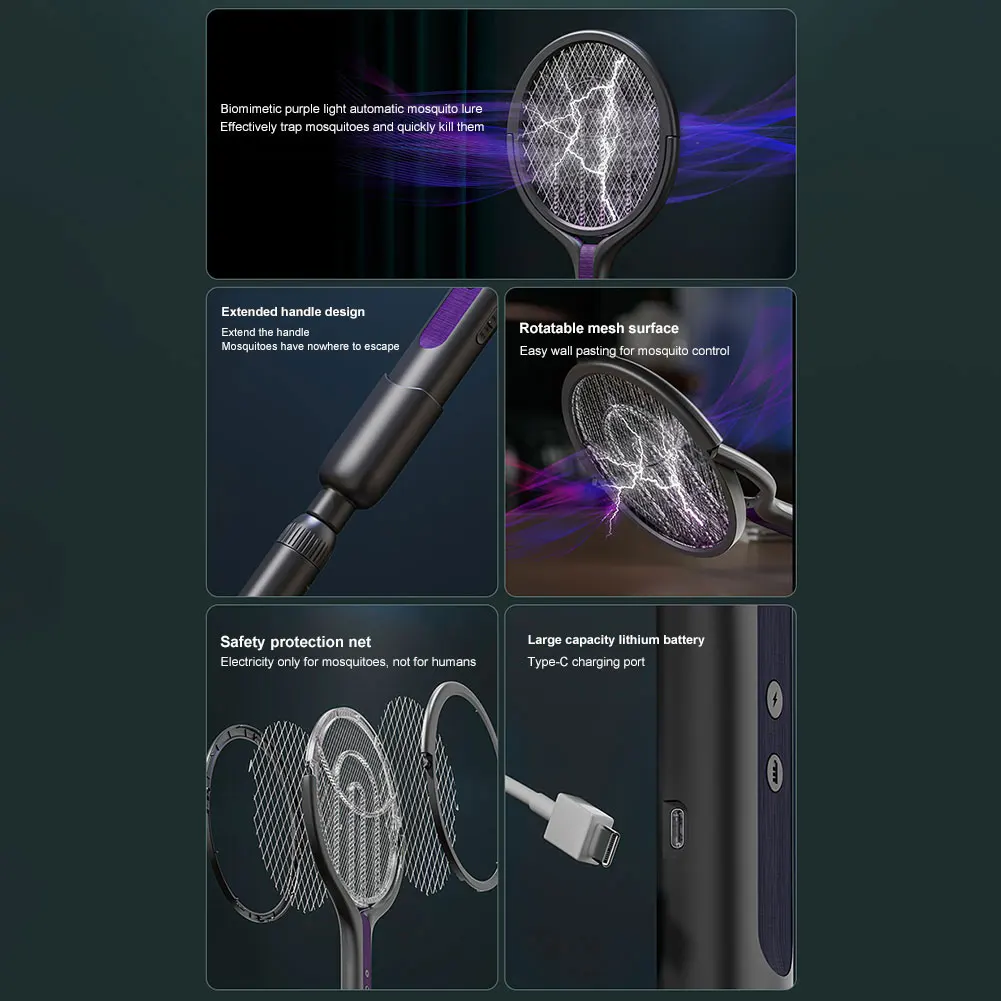 quipée d'une tige télescopique qui s'étend jusqu'à 106 cm, notre raquette anti-insectes vous permet d'atteindre facilement des endroits élevés comme les plafonds, garantissant qu'aucun insectes ne s'échappe à votre vue.