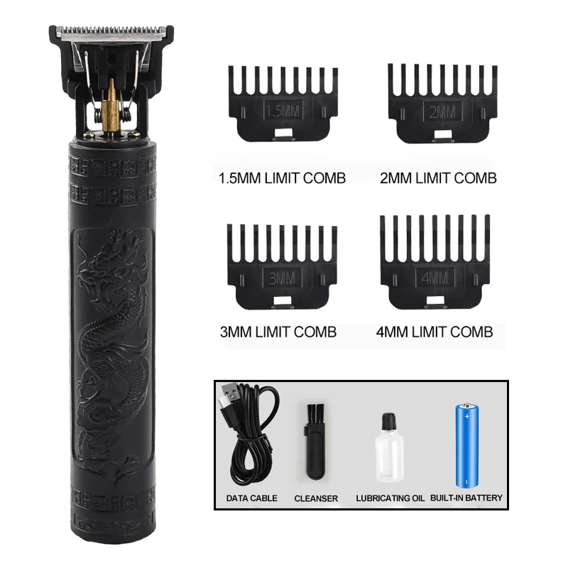 Rasoir de coupe de cheveux pour hommes tondeuse Rechargeable rasoir adulte électrique Vintage tondeuserazor maison USB charge salon de coiffure Dragon noir