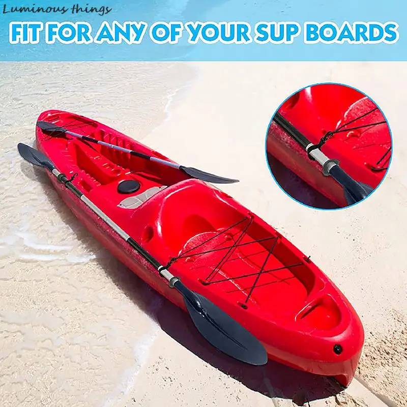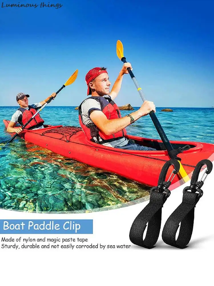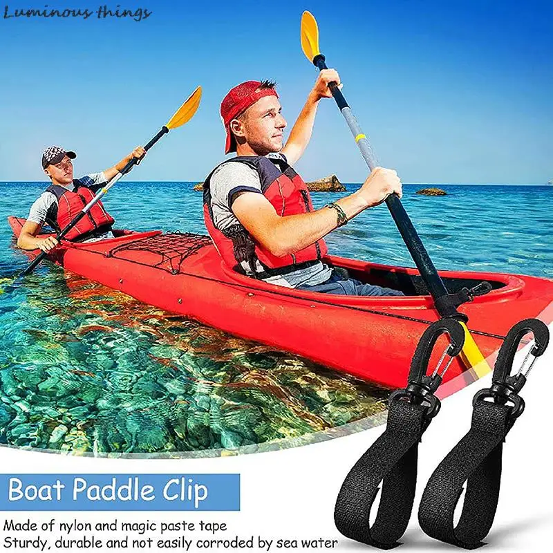 Vous recevrez 2 clips de sangle de pagaie de kayak à double paquet, deux clips maintiennent une pagaie et peuvent s'enclencher sur les œillets de pagaie, les anneaux en D ou tout autre cordon élastique.
