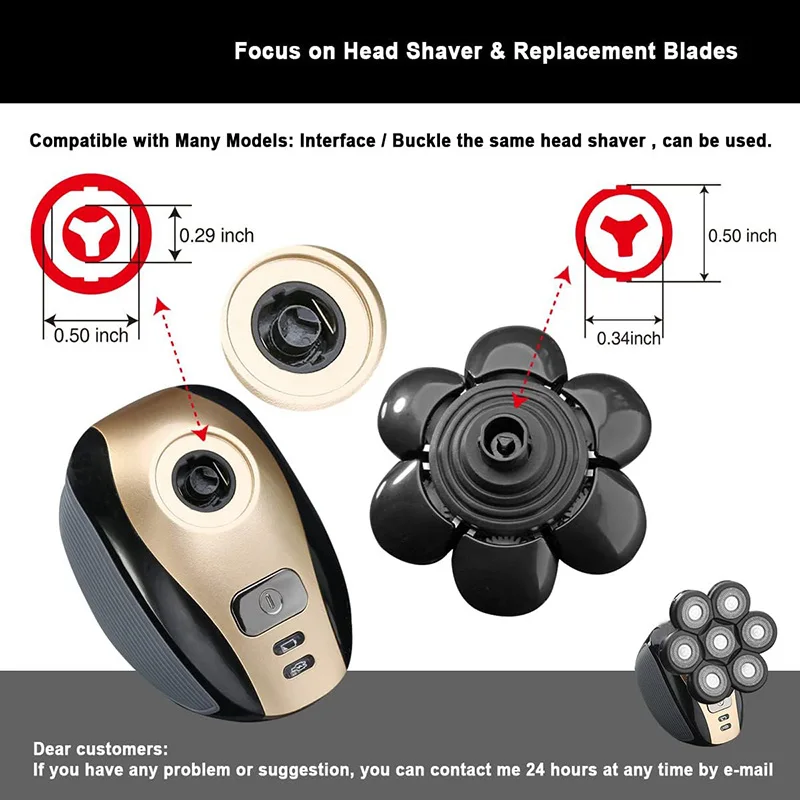 Remplacement pour rasoirs à tête 7 têtes de remplacement de cheveux de barbe pour rasoir pour tête pour hommes chauve Interf universel