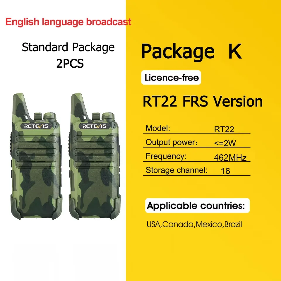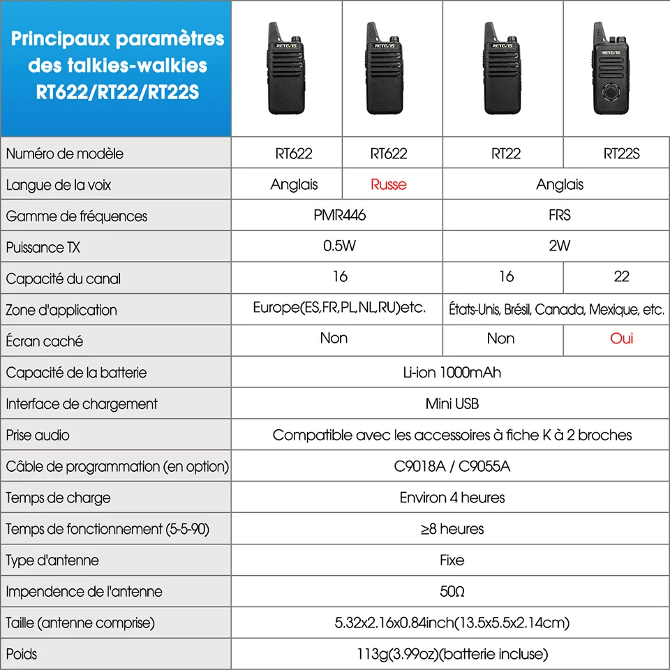 Sélectionnez la version PMR anglaise du RT622 sans adaptateur ; Sélectionnez la version FRS RT22 et la version PMR russe avec adaptateur.