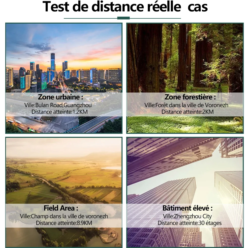Habituellement, la distance d'appel dans les zones urbaines peut atteindre 1,2 km et la zone ouverte peut atteindre 1 à 3 km.