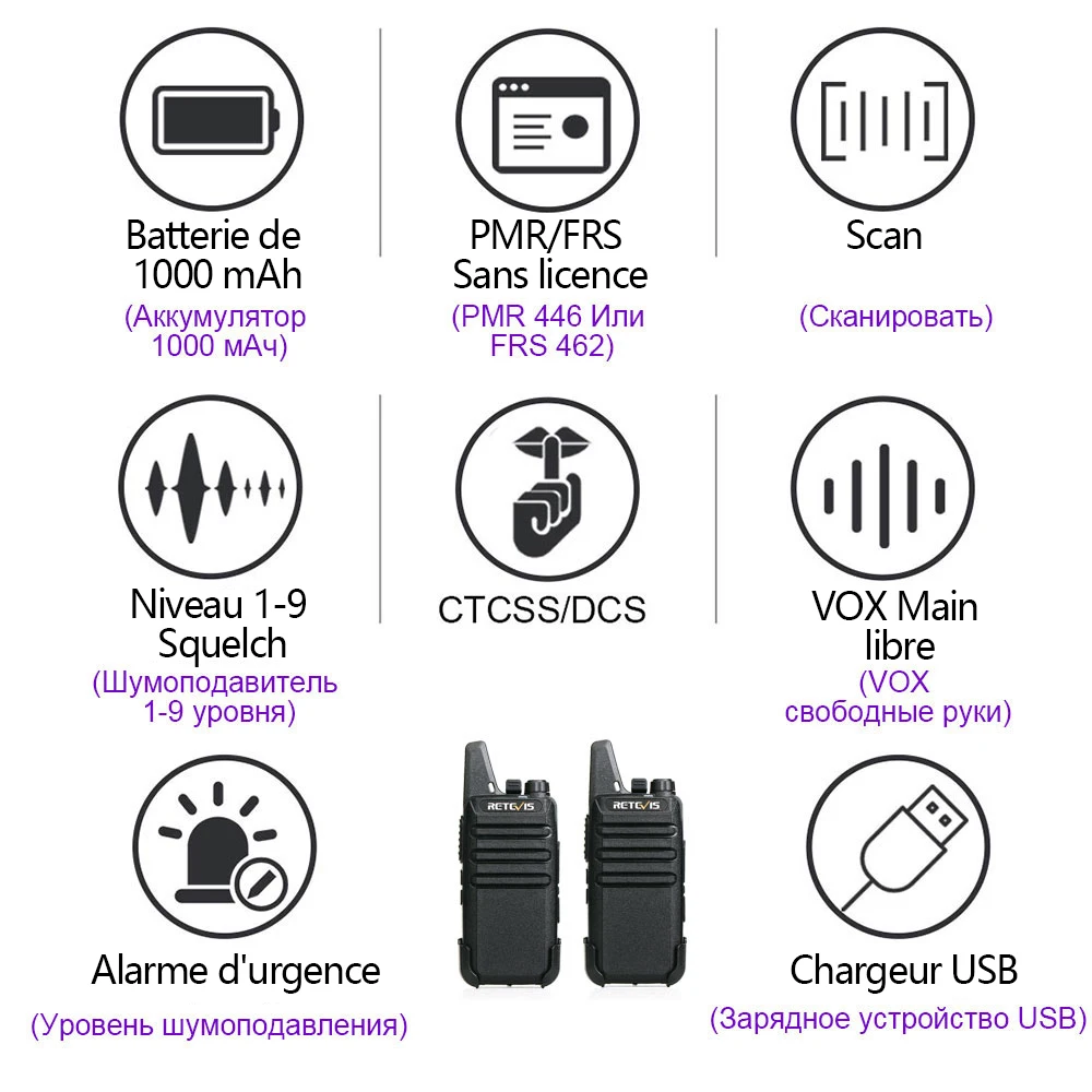 1. Réglage d'usine de PMR ou FRS, vous n'avez donc pas à vous soucier des problèmes juridiques, vous n'avez pas besoin d'apprendre le réglage de la fréquence du talkie-walkie.