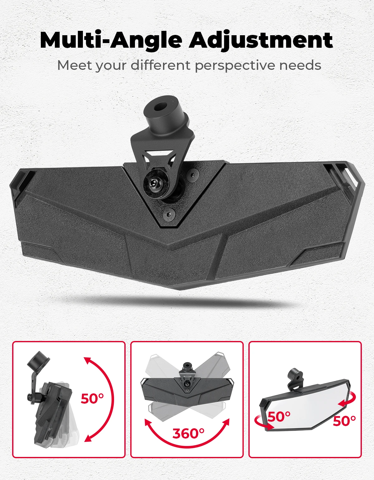 * Réglage multi-angle : quipé d'une surface de miroir large et claire, il offre 3 options de réglage avec 120 Rotation verticale de la rotule pour éliminer les angles morts et garantir une conduite plus sûre.