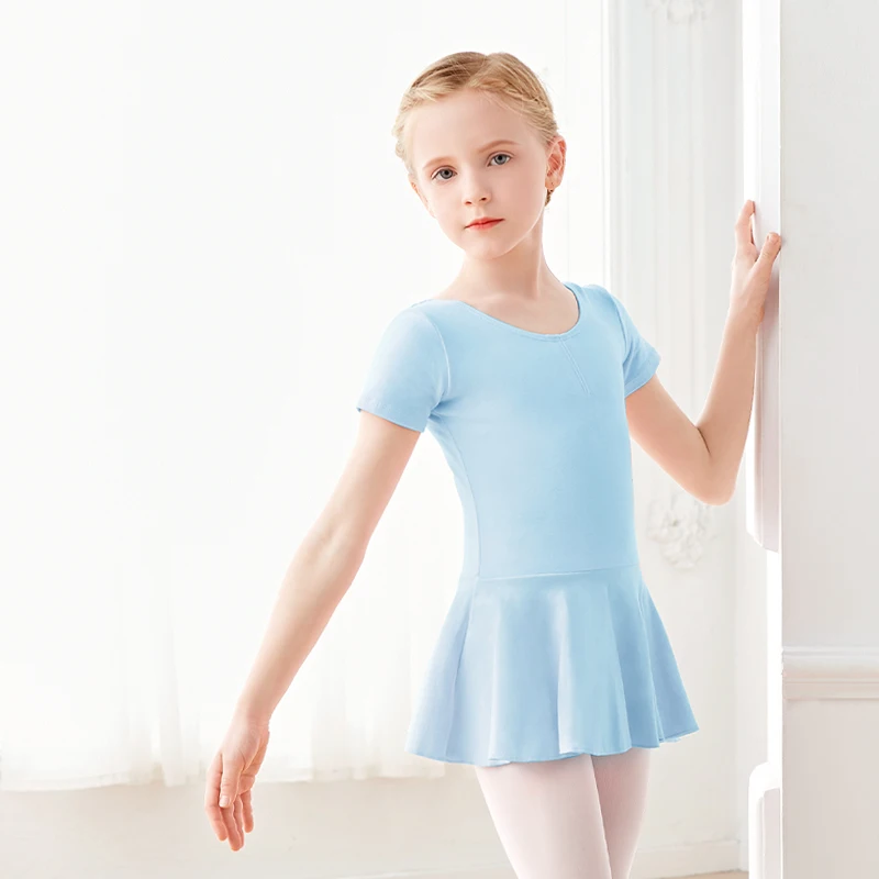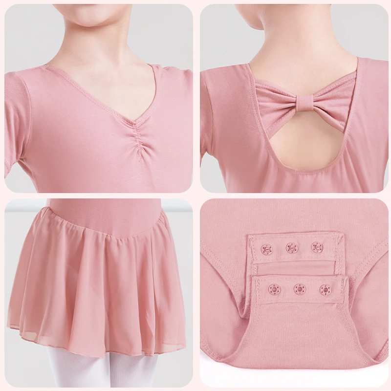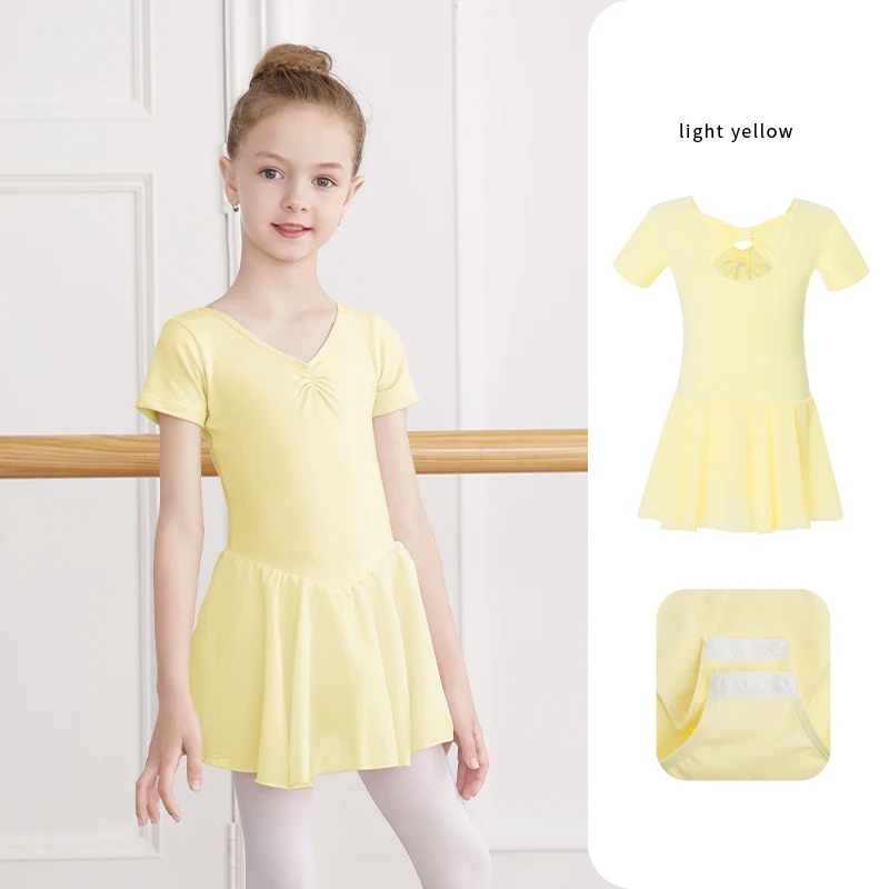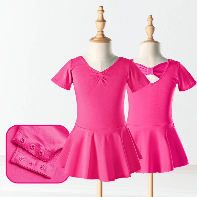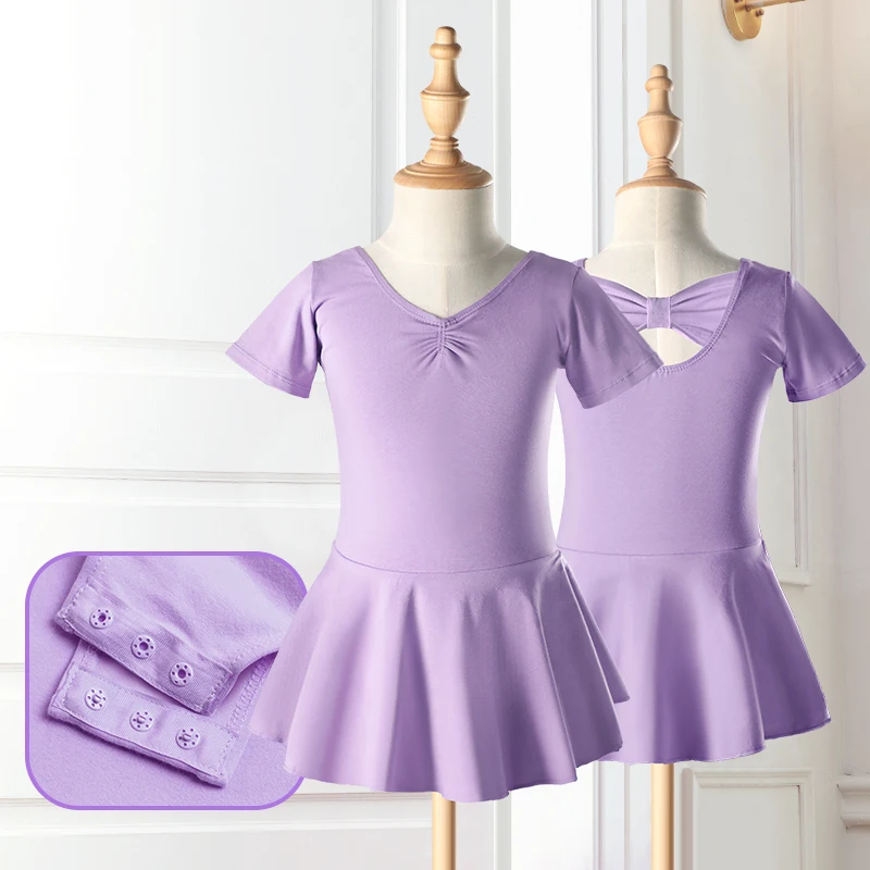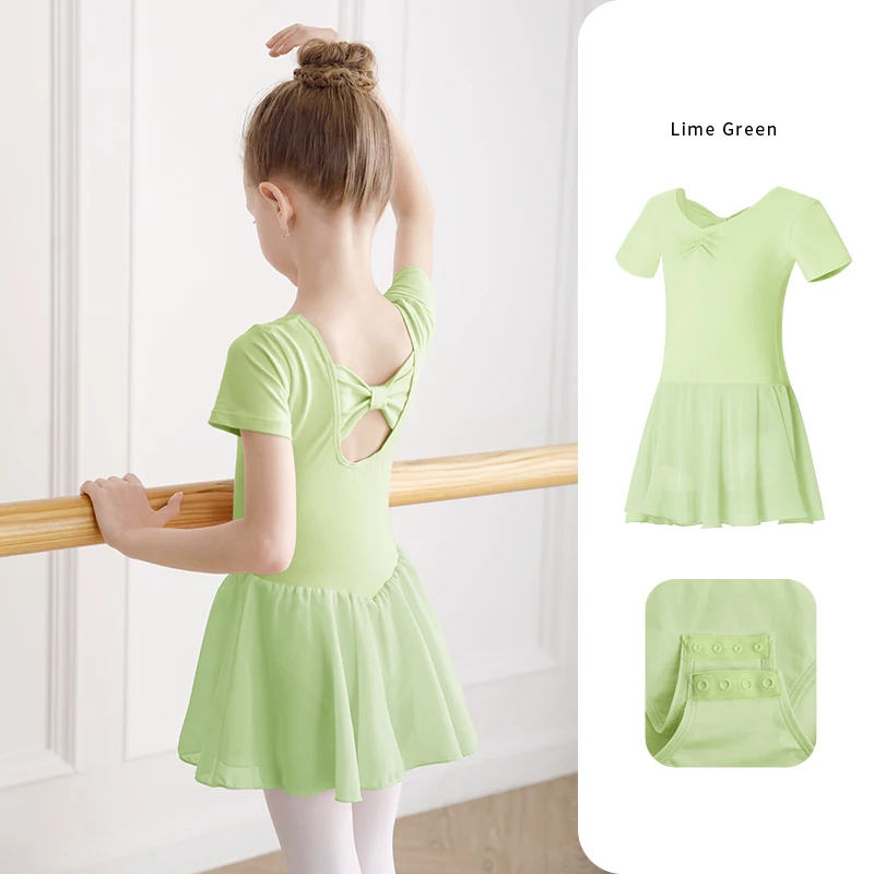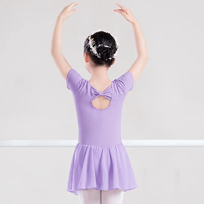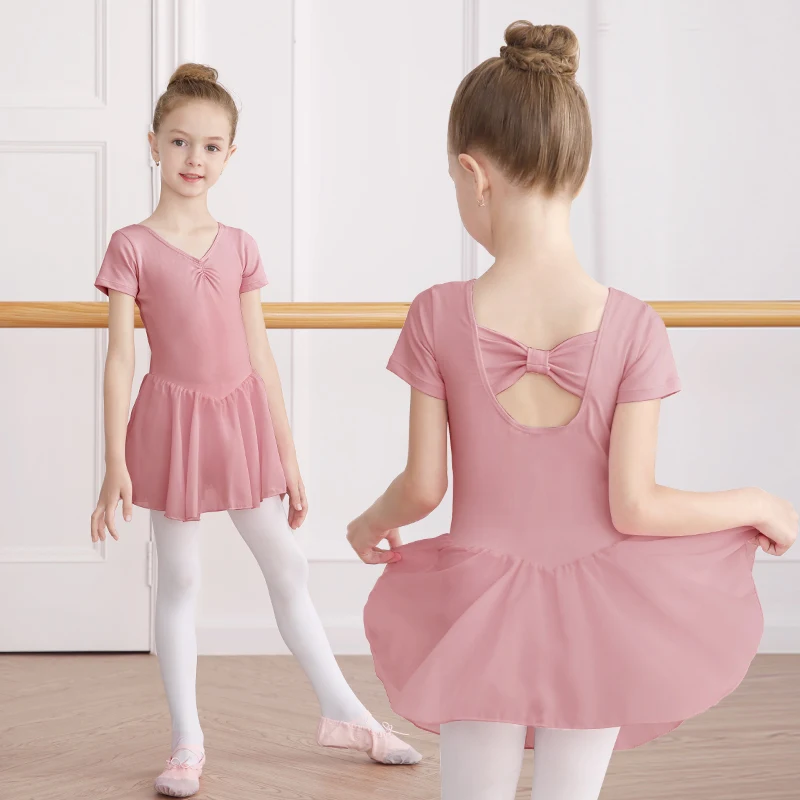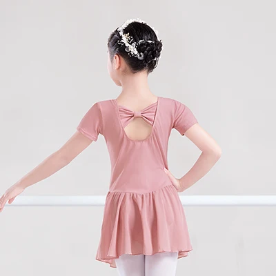 Robe de Ballet justaucorps de gymnastique pour filles, vêtements de danse de Ballet à manches courtes, jupes en mousseline de soie, justaucorps de danse à nœud papillon pour enfants