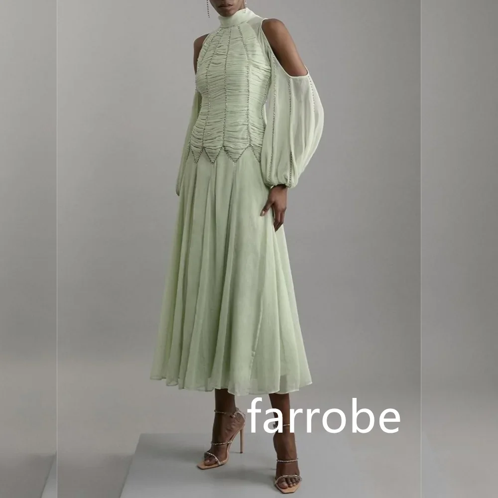 Robe de Cocktail en Mousseline de Soie Plissée, Simple, Personnalisée, Ligne A, Col Haut, Mi-Longue, Classique, Exquise, Style Moderne, Pastrol Chinois