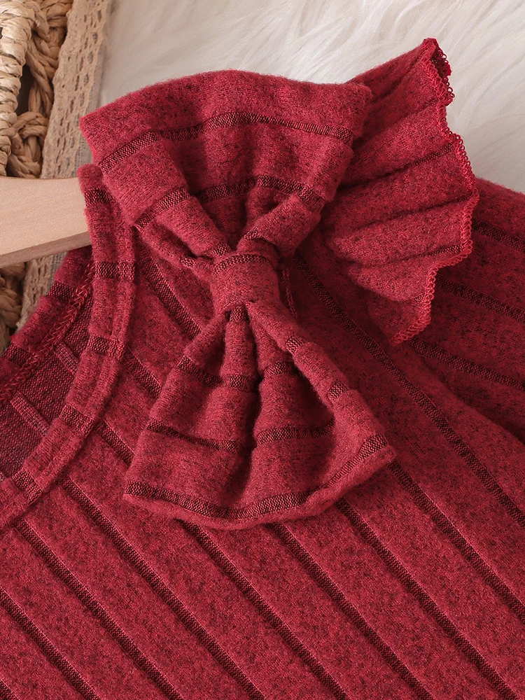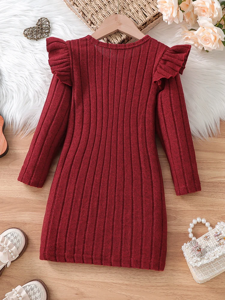 Robe de printemps et d'automne pour filles, avec nœud fin décoré, manches flottantes, manches longues