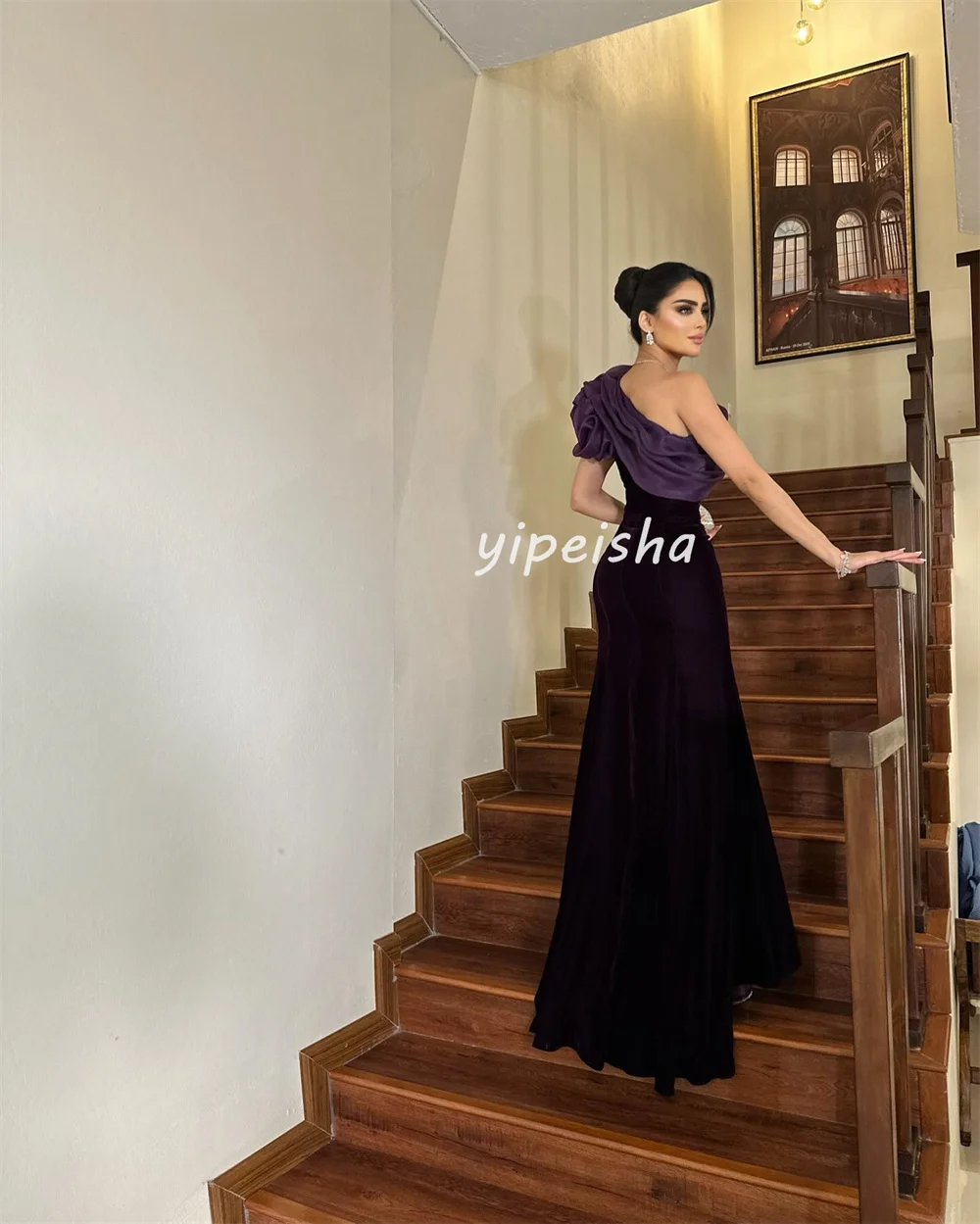 Robe de Sirène Froncée à Plis Formel, Longue à une Épaule Dénudée, sur Mesure, Style Moderne, à la Mode