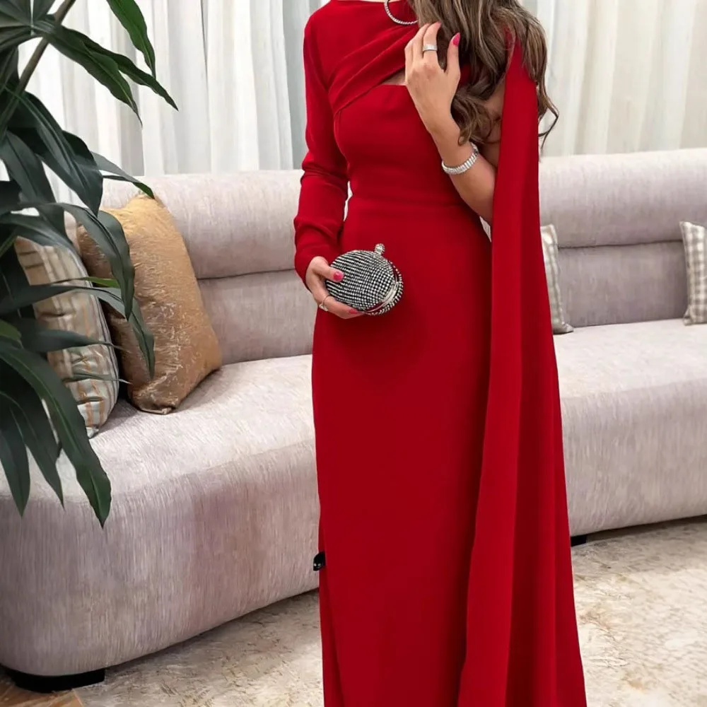 Robe de soirée élégante, asymétrique épaule dénudée, avec traîne de balayage, longue Silhouette, pour invités de mariage, Gala, Banquet, occasions de luxe