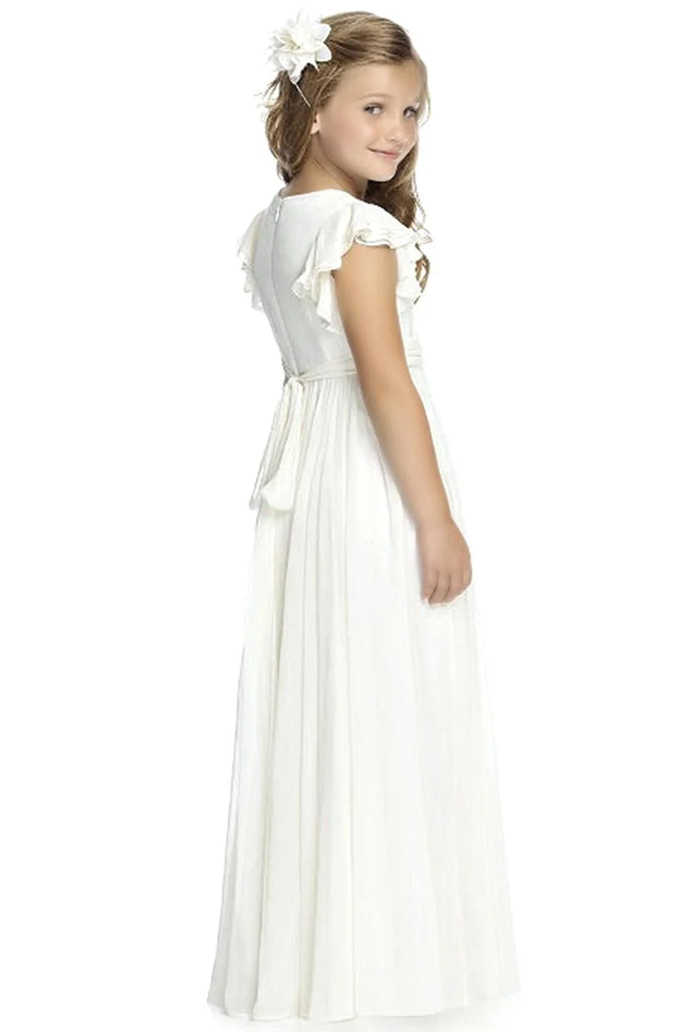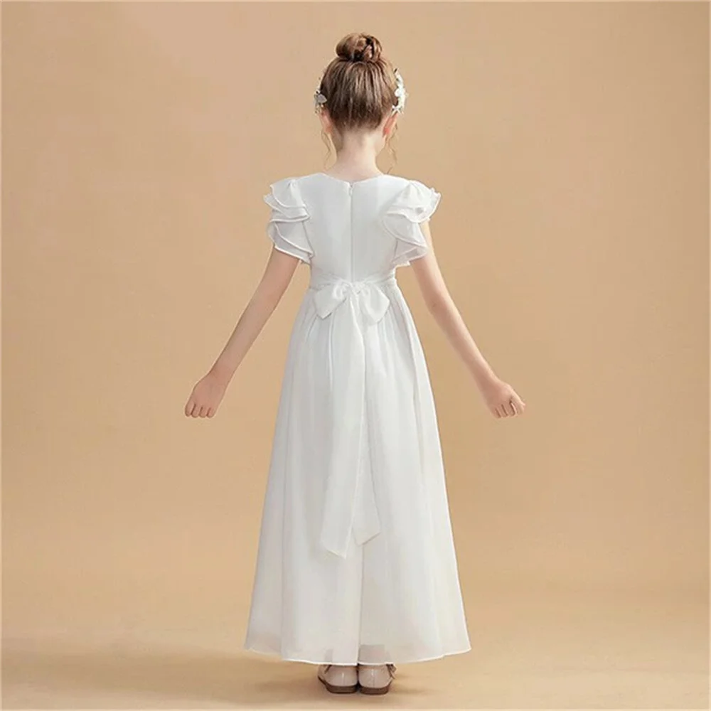 Robes de demoiselle d'honneur pour filles de 2 à 3 ans, ligne A, col Jewe, manches à volants, robe de demoiselle d'honneur junior, ceinture froncée en mousseline de soie, vêtements de cérémonie longs