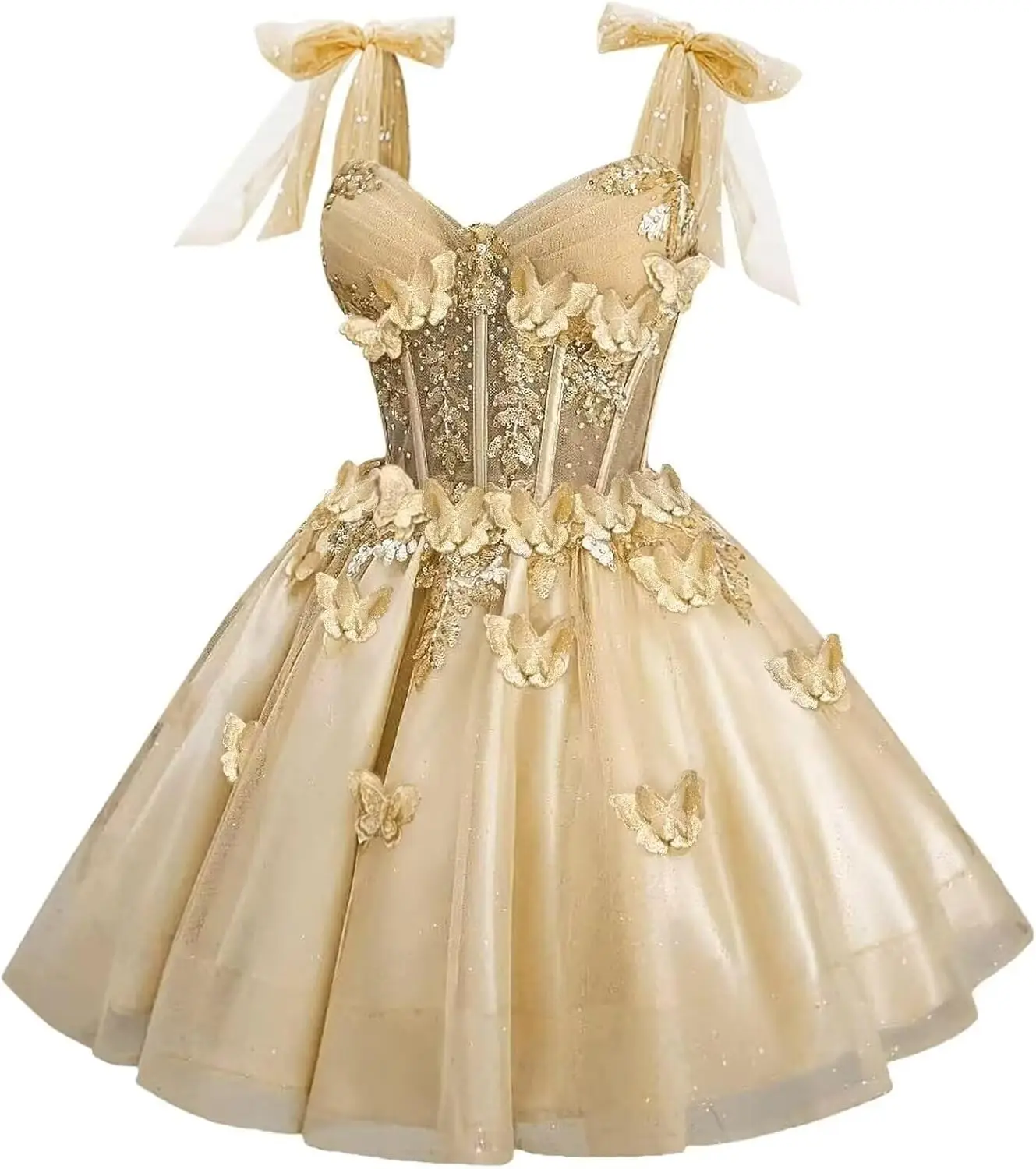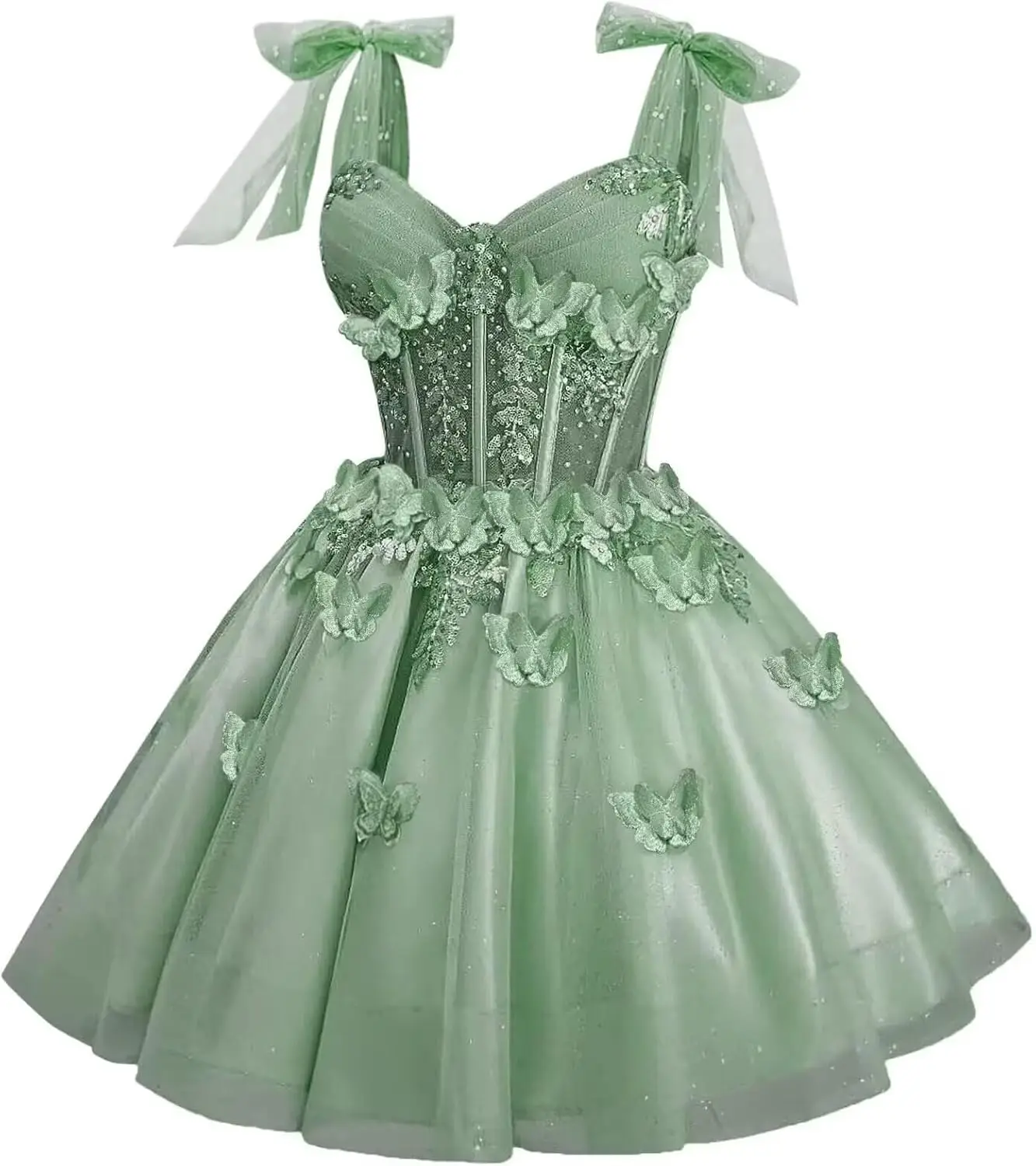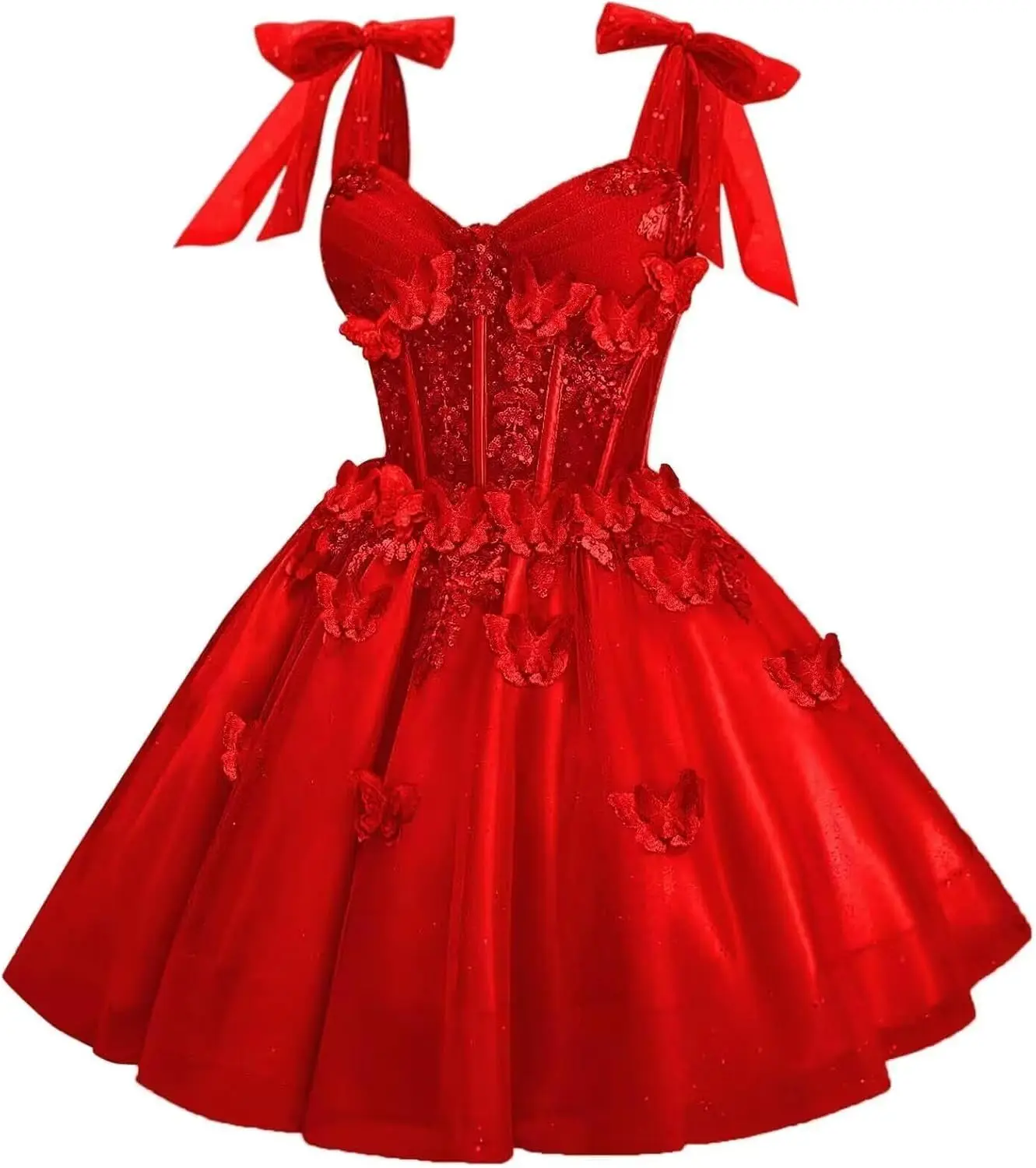 Robes de cocktail de bal en dentelle de tulle à paillettes courtes avec nœud