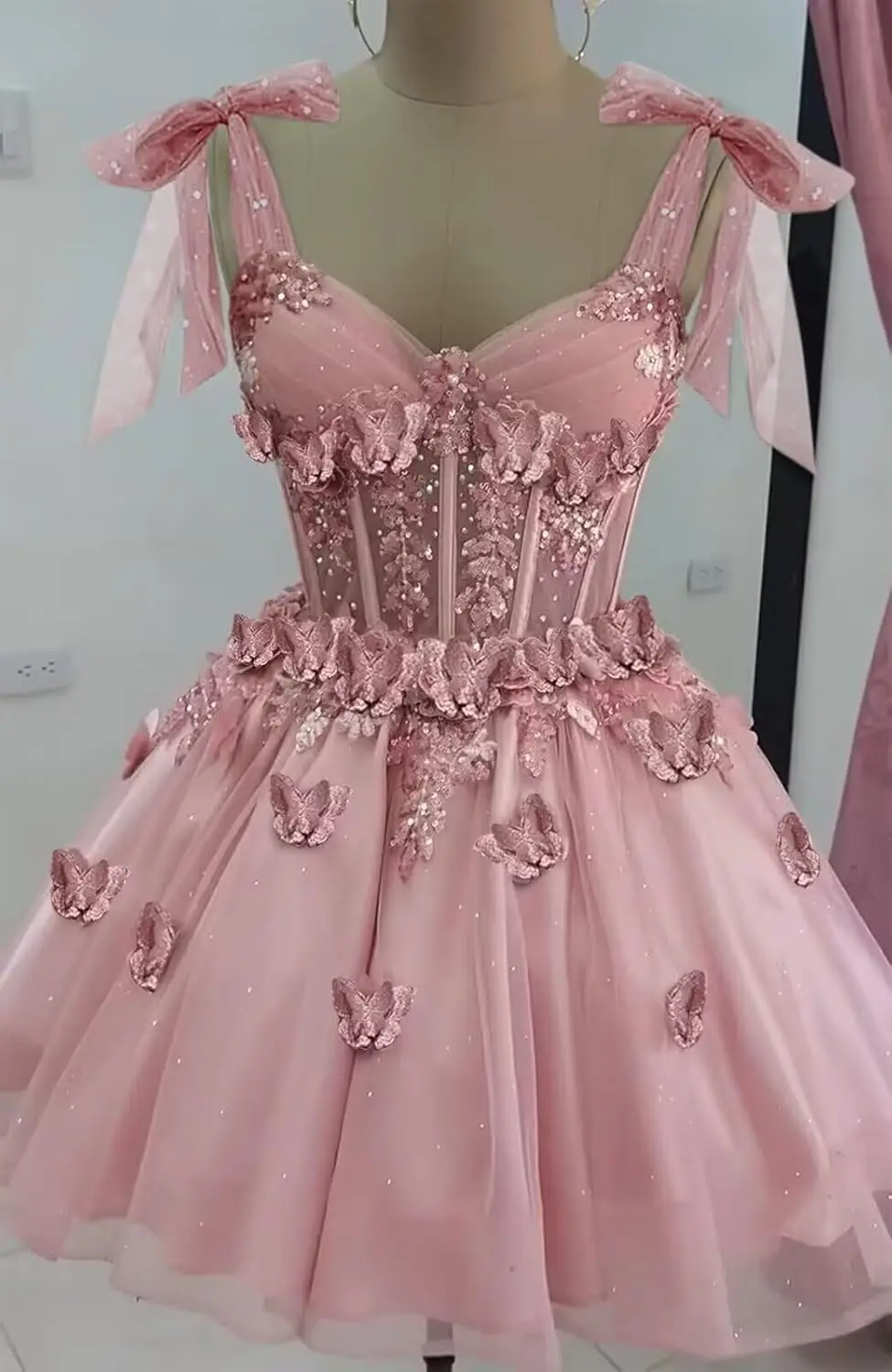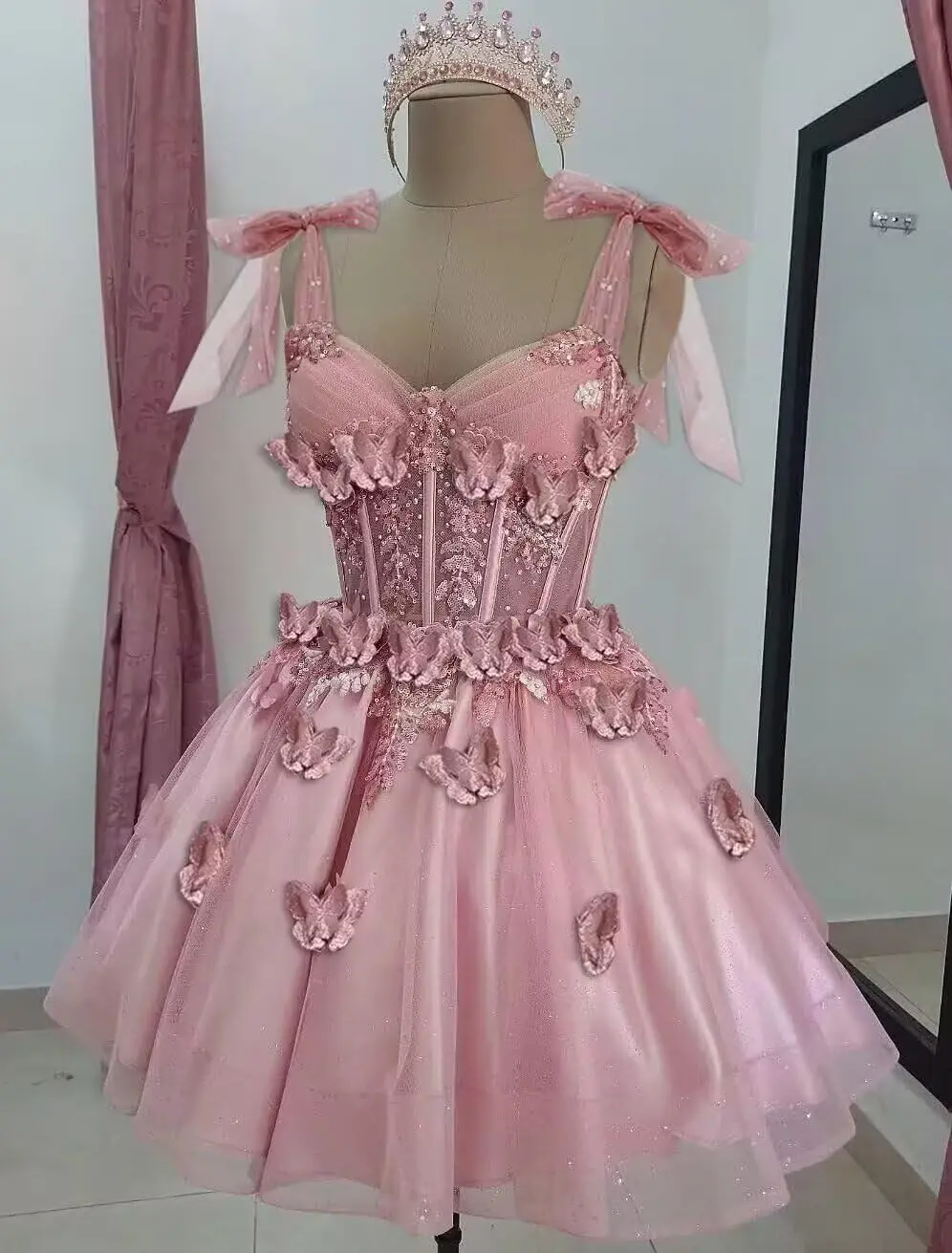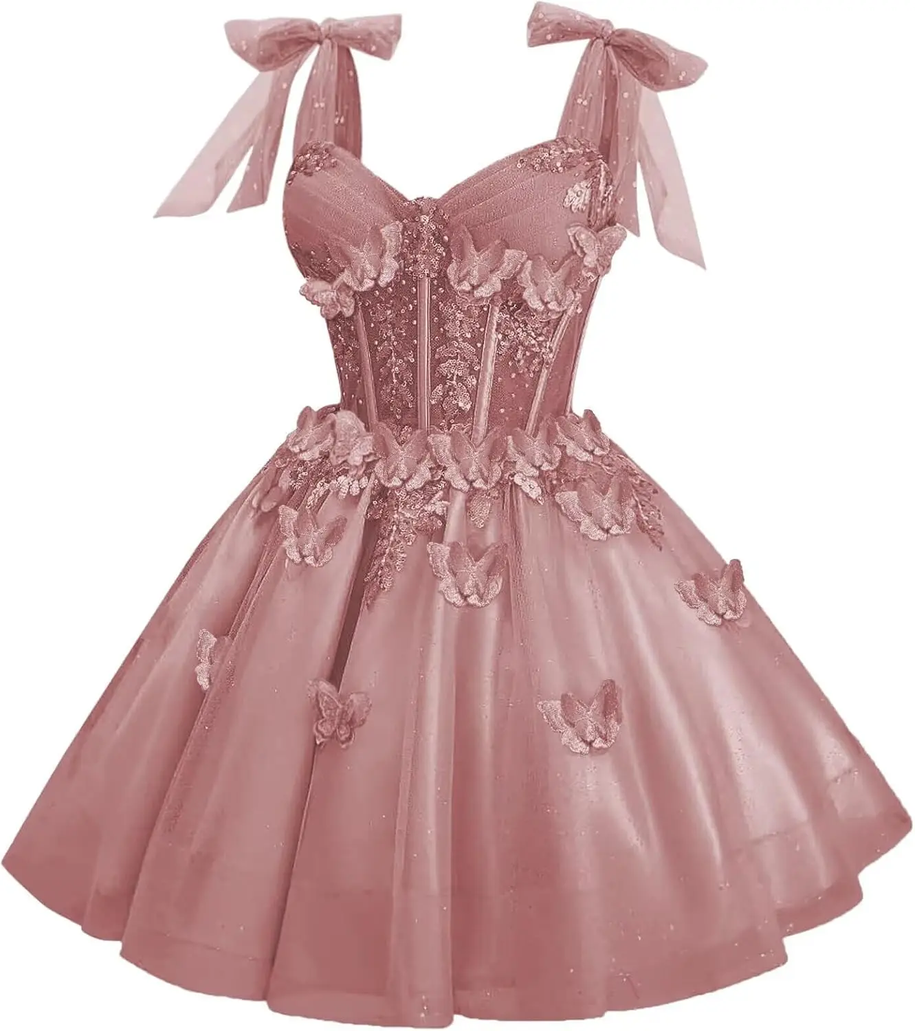 Robes de cocktail de bal en dentelle de tulle à paillettes courtes avec nœud