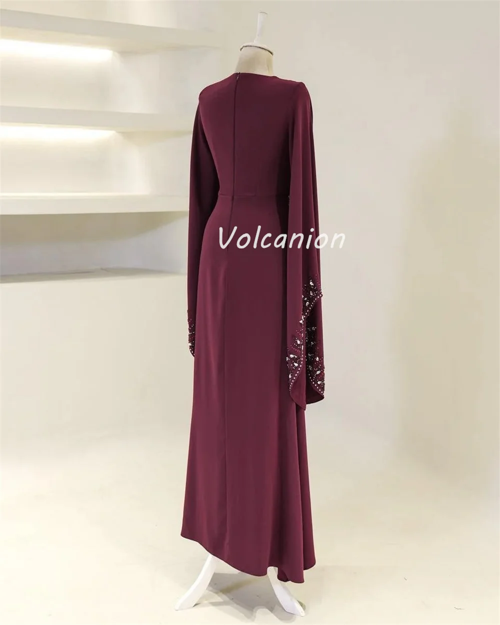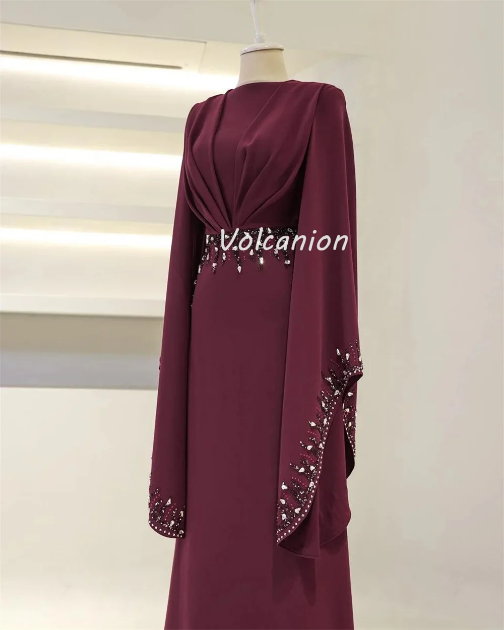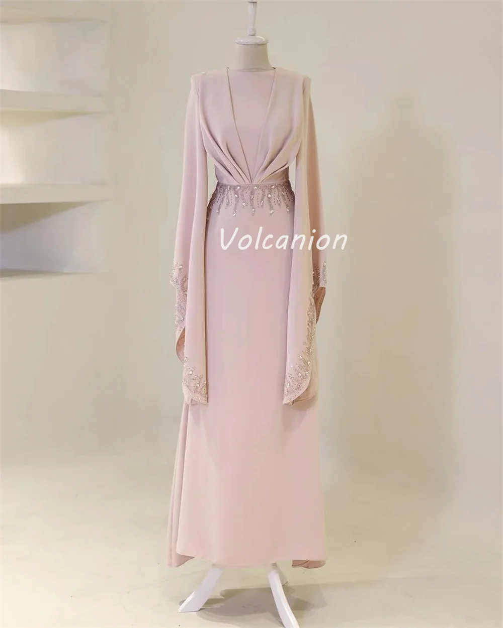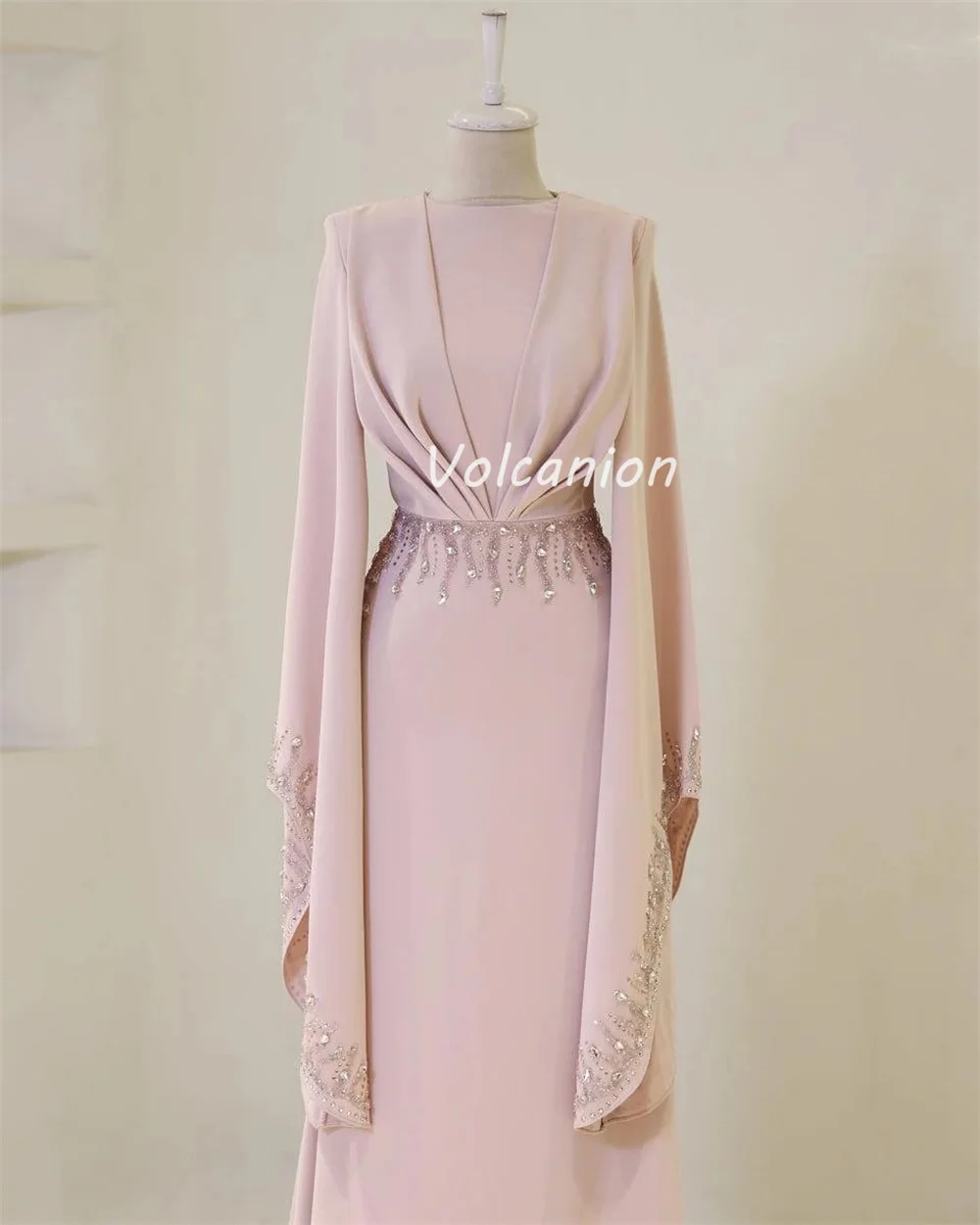 Robes longues personnalisées de haute qualité, Jersey formel plissé, perles, paillettes, col rond, robes d'occasion sur mesure, Style moderne