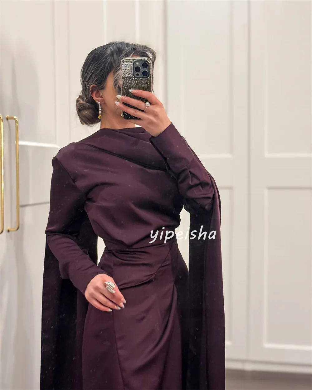 Robes longues plissées froncées et droites, tailles simples personnalisées disponibles, col haut, robes d'occasion sur mesure, classiques, décontractées et formelles