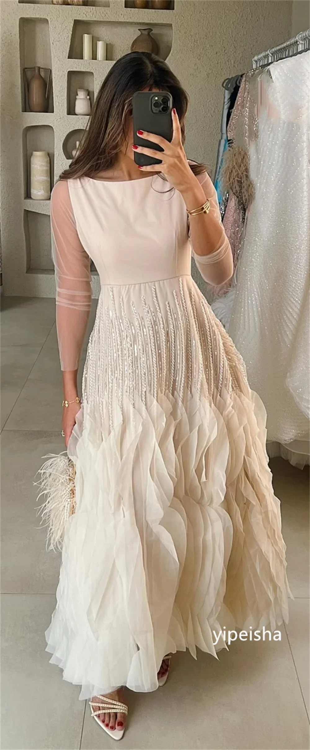 Robes mi-longues à encolure dégagée en tulle complexe personnalisé, robes de RhA-ligne, style moderne exquis classique, pastol, vêtements chinois unisexes
