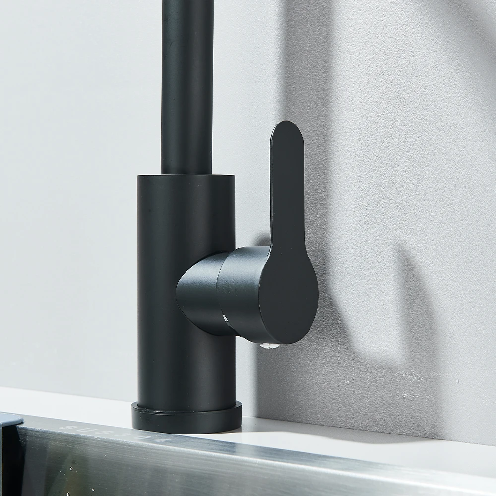Robinet de cuisine noir en acier inoxydable, mitigeur d'eau froide et chaude à poignée unique, grue de cuisine à montage sur pont