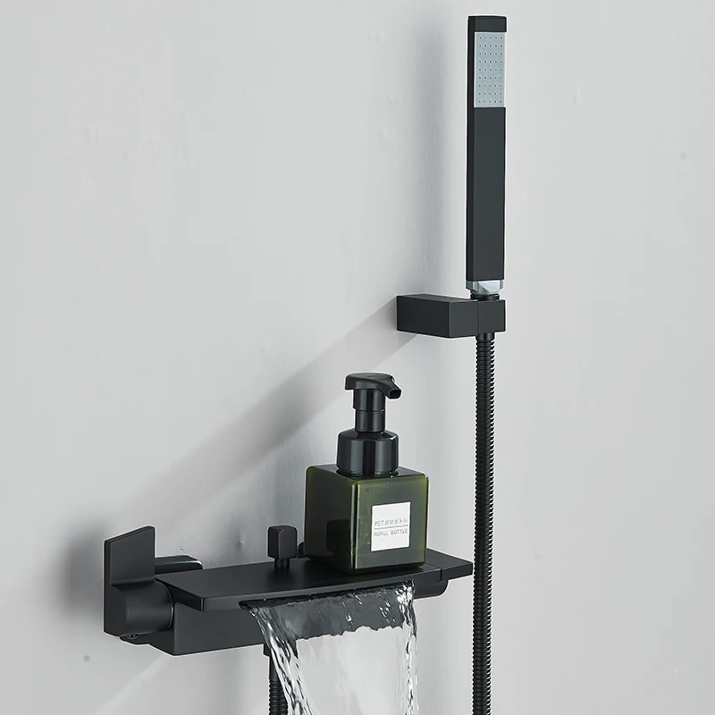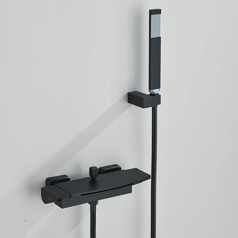 Robinet de douche cascade noir, mitigeur de baignoire à double poignée avec douchette à main, ensemble de douche de bain cascade