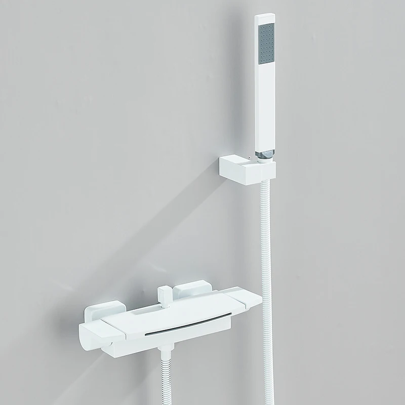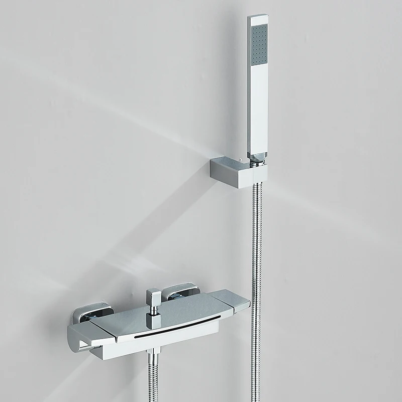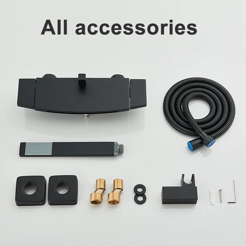 Robinet de douche cascade noir, salle de bains, baignoire murale, robinets de douche, double poignées, mitigeur d'eau chaude et froide avec douchette