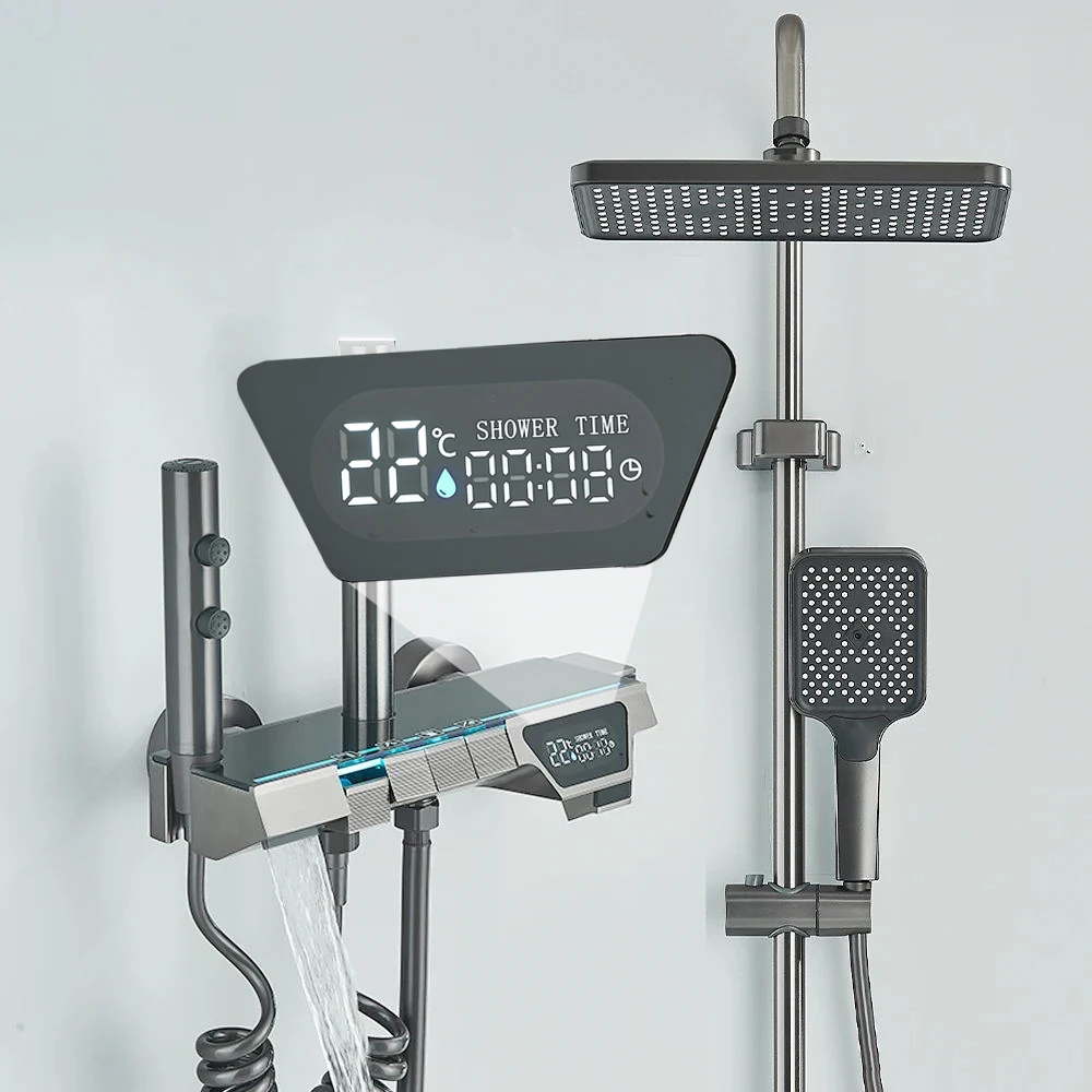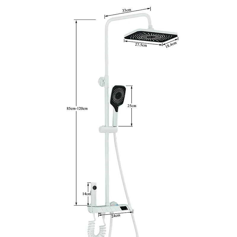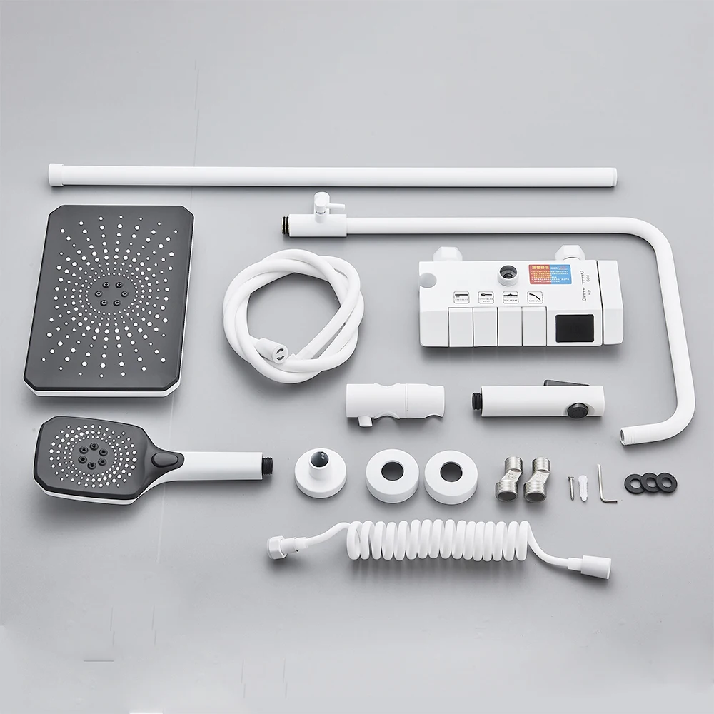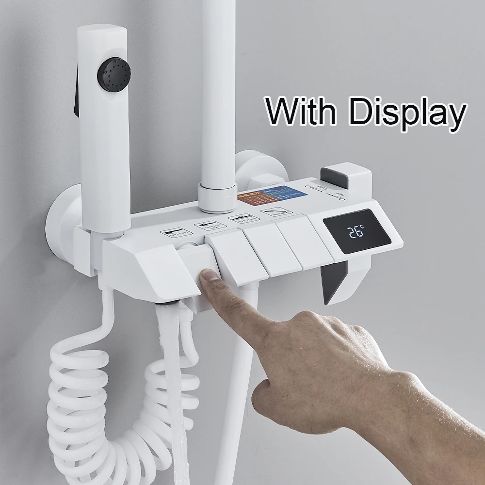 Robinet de douche de salle de bains blanc avec affichage numérique, 4 fonctions, montage mural, robinet d'eau chaude et froide, système de douche de salle de bains pour Piano