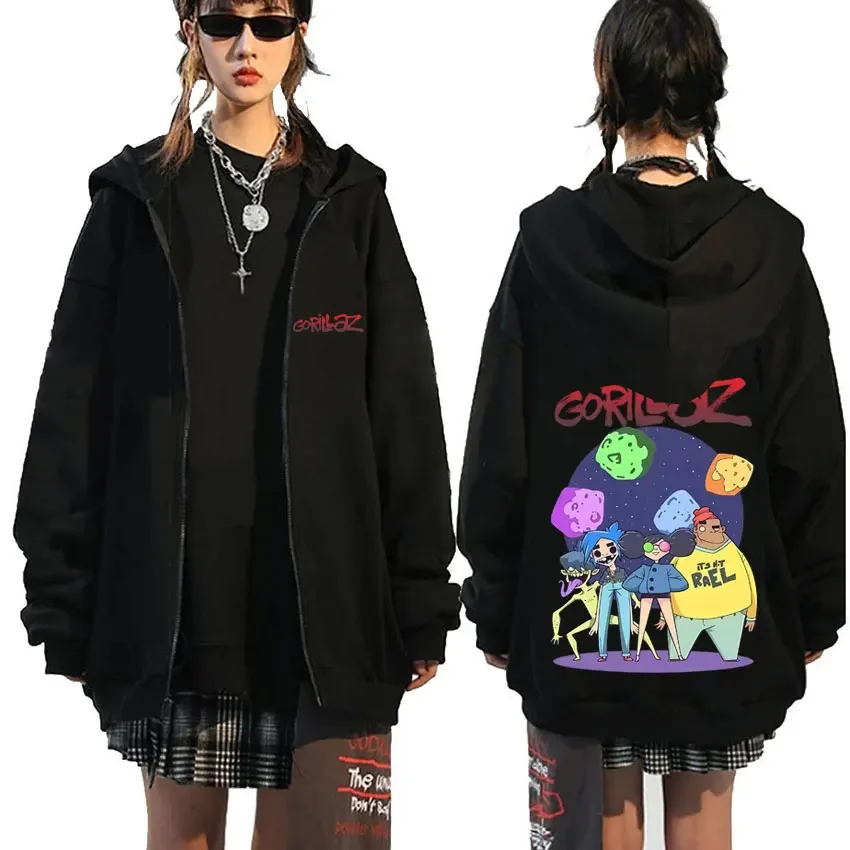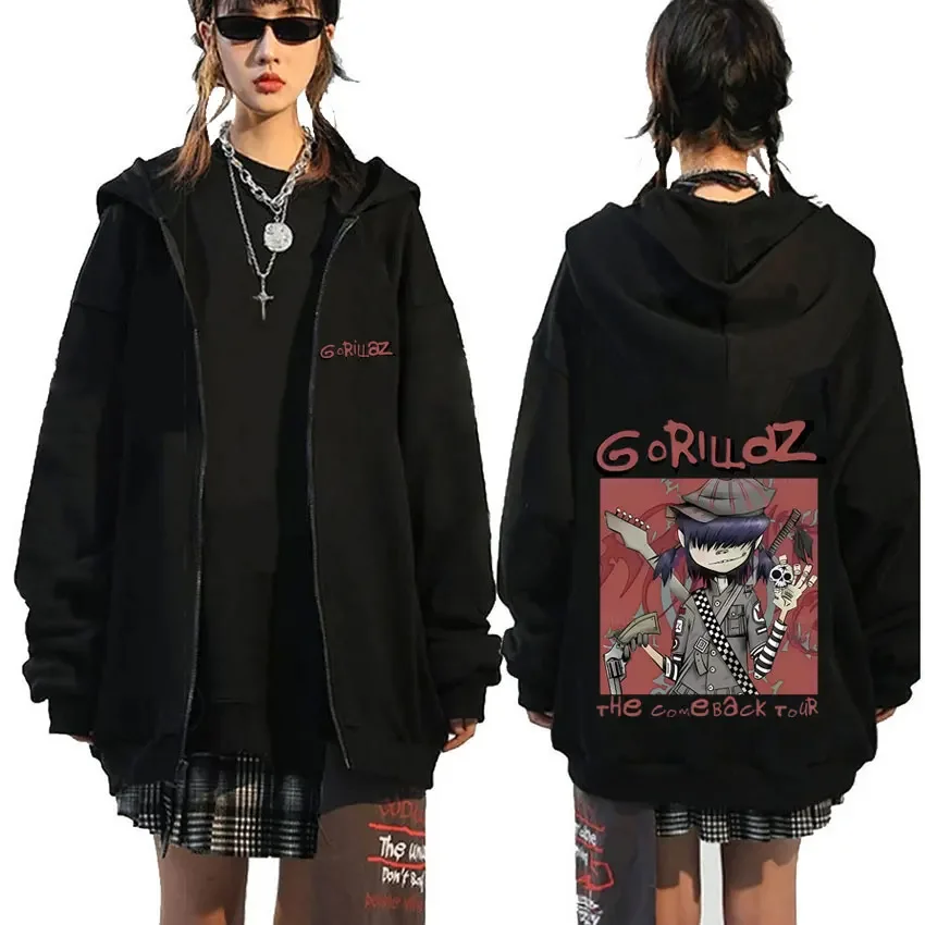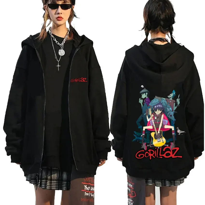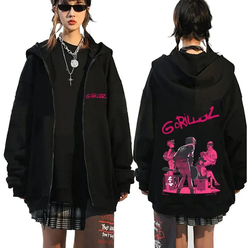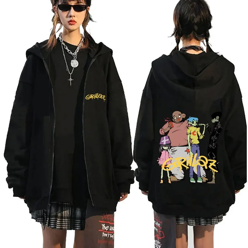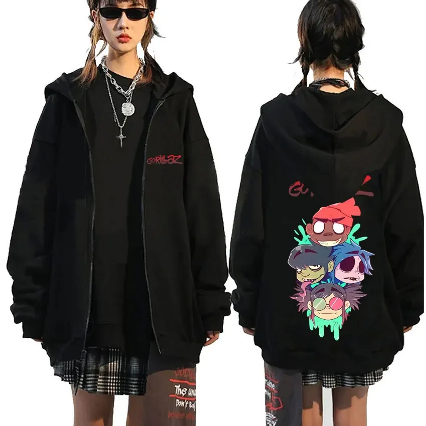 Rock Band Gorillaz Demon Days Eyes graphique sweat à capuche avec fermeture éclair hommes Hip Hop mode surdimensionné veste zippée unisexe sweat zippé