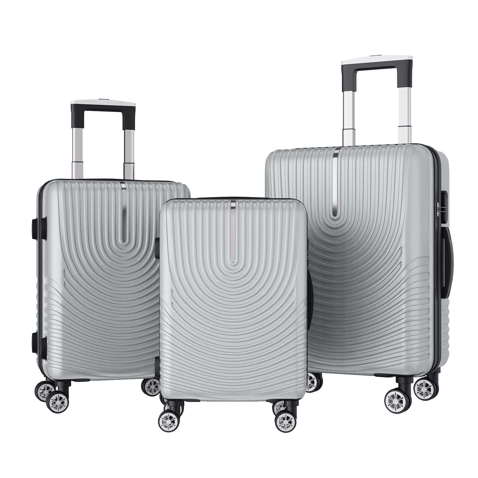 Rosahqnda Ensemble de valises à roulettes 3 pièces 4 roues universelles Étui de verrouillage ABS Manchon rigide Rangement de voyage