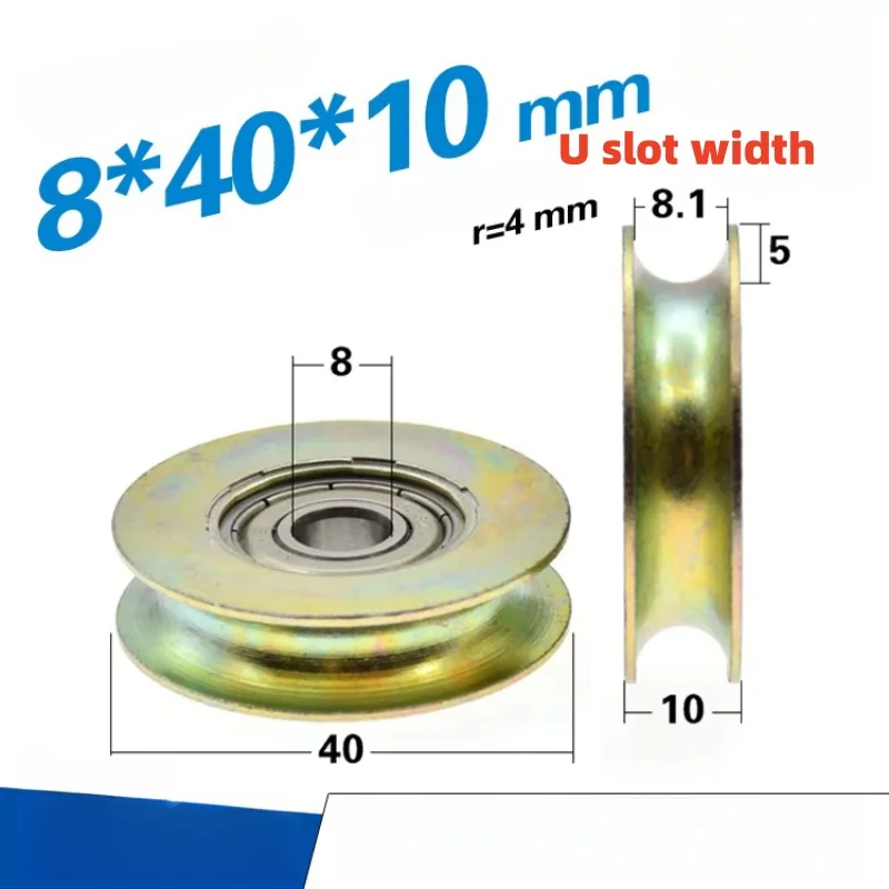 Roue de guidage de roue concave en forme de U, rouleau à rainure 8x40x10, câble métallique en acier passant à travers la roue de suspension, 4 pièces