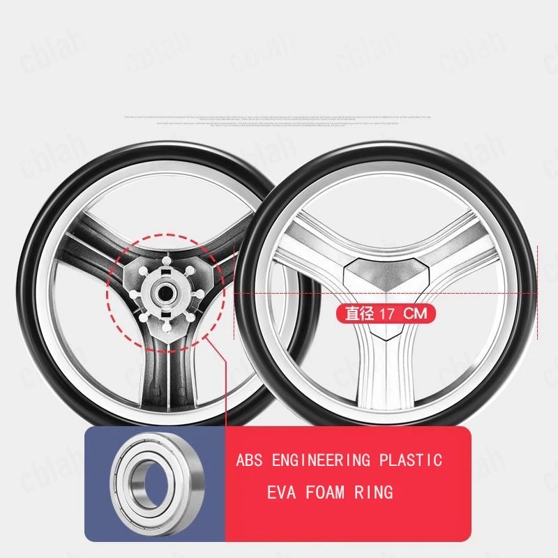 Roues de rechange EVA de 17 cm pour chariot à provisions (arbre de 8 mm) – Silencieuses avec roulements, usage domestique, durables et antidérapantes (paquet de 2)