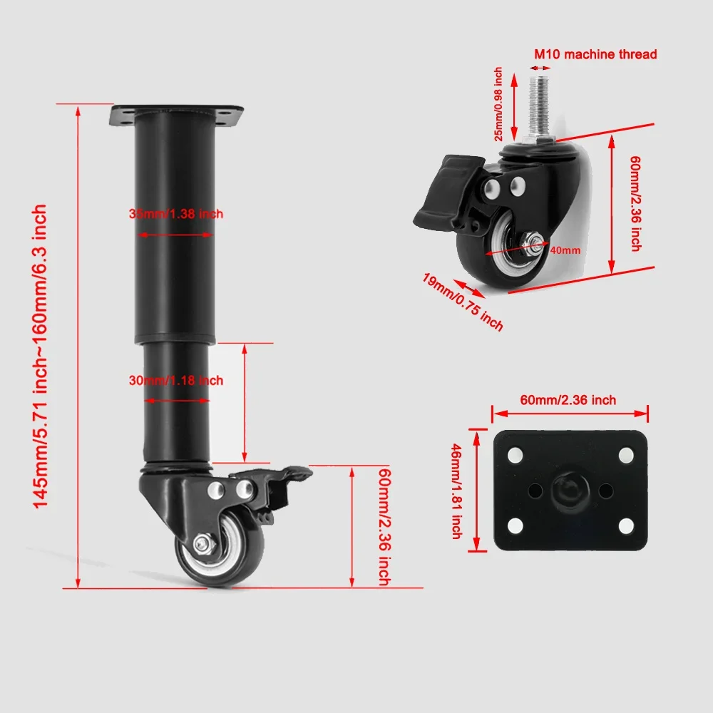 Roulettes en acier laminées à froid, roues de table, courroies de frein, roues rotatives en acier inoxydable, roues universelles, pieds télescopiques