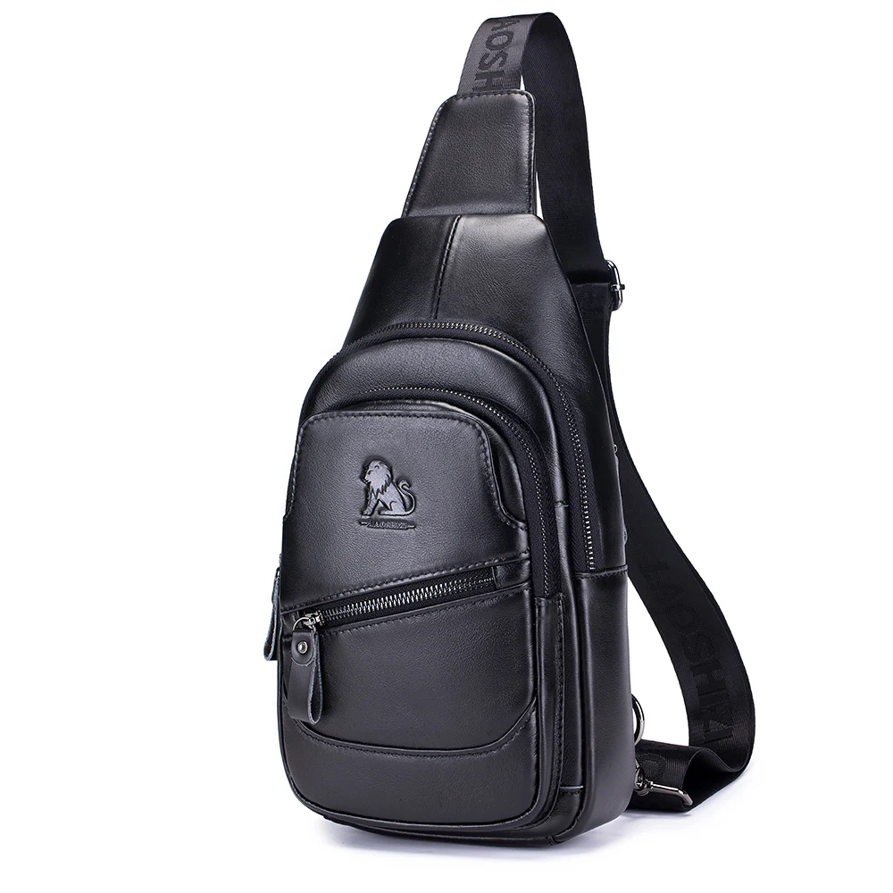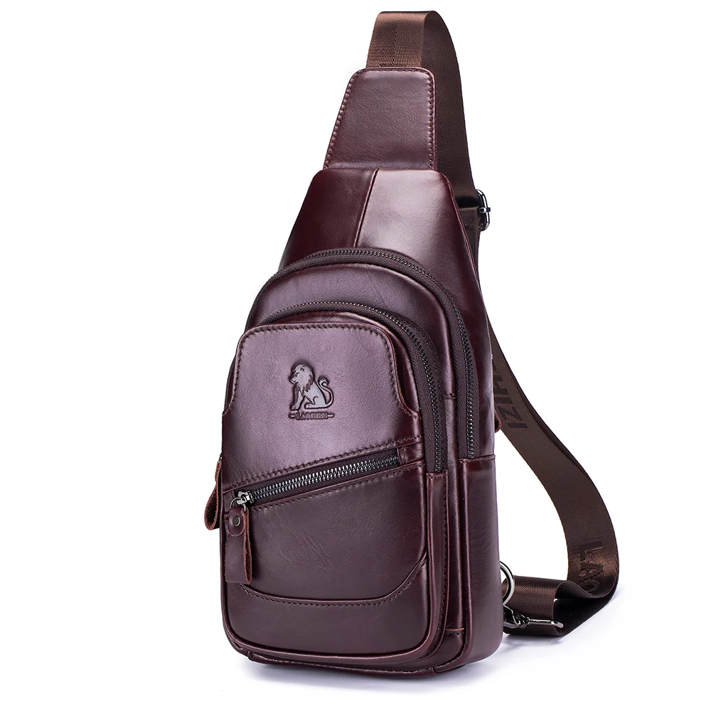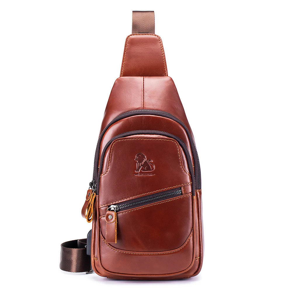 Sac à bandoulière en cuir de vachette pour homme, couche supérieure USB, sac à bandoulière avant, décontracté