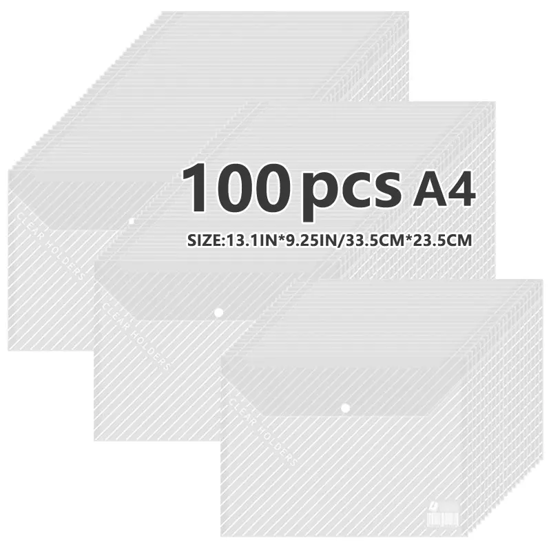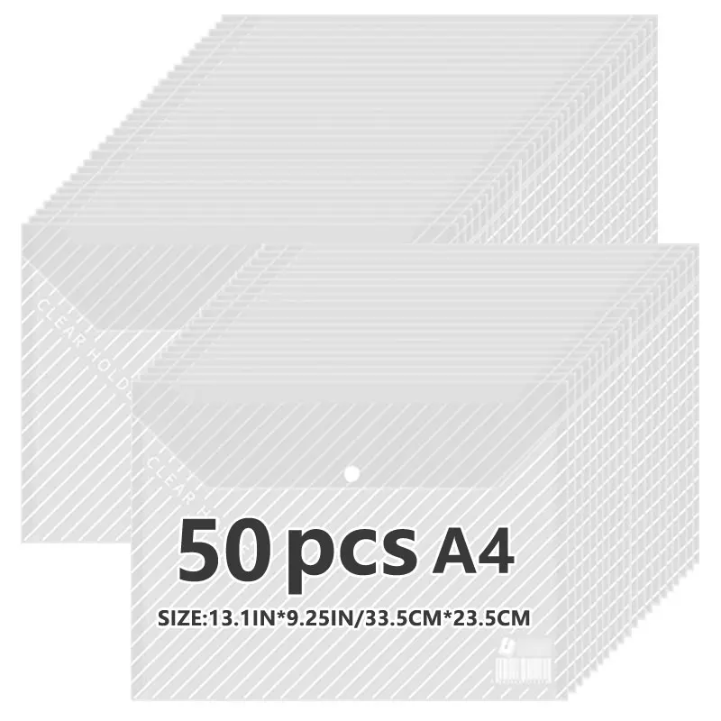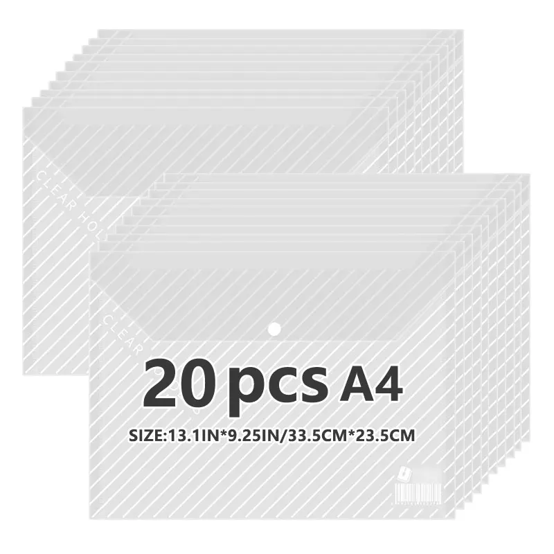 Sac à documents transparent en matériau PP étanche, sac à boutons de bureau pour étudiants, A4, multi-spécifications