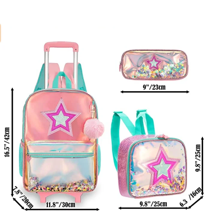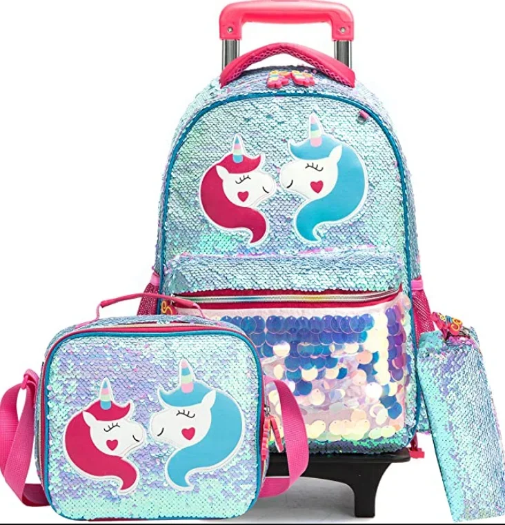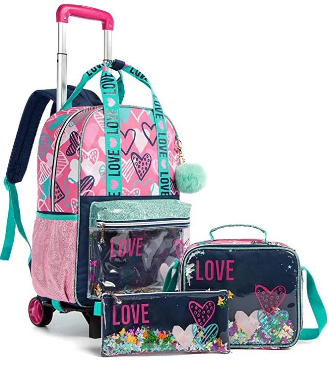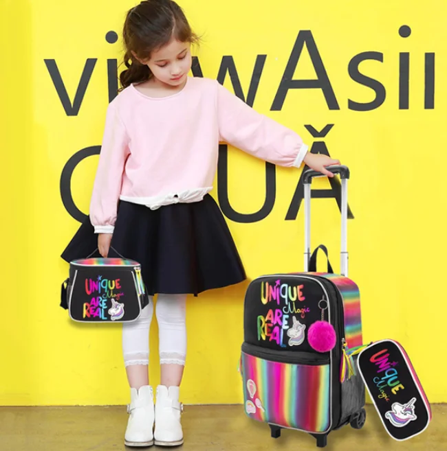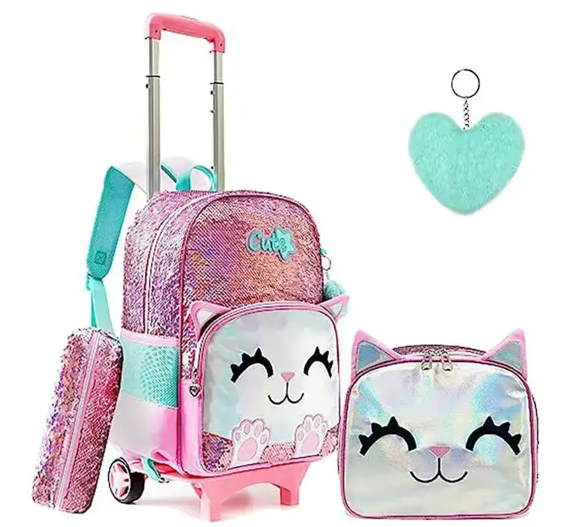 Sac à dos d'école à roulettes sac d'école avec roulettes sac cartable enfants école sac à dos roulant pour filles sac de chariot d'école