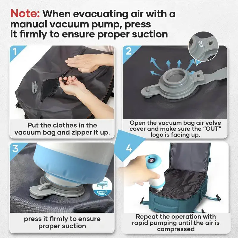 Sac à dos sous vide avec pompe pour voyage, système de vide à compression d'air, embarquement, bagage à main et airbag scellés solides pour t