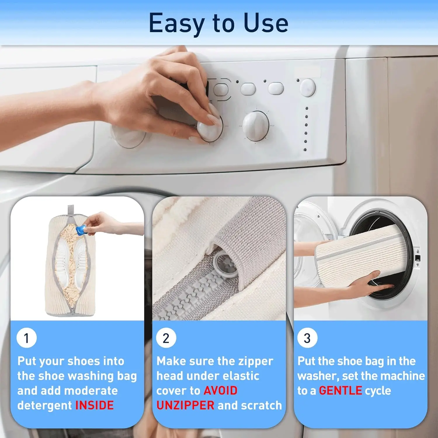 Protège et aide à nettoyer les chaussures pendant le lavage en machine.