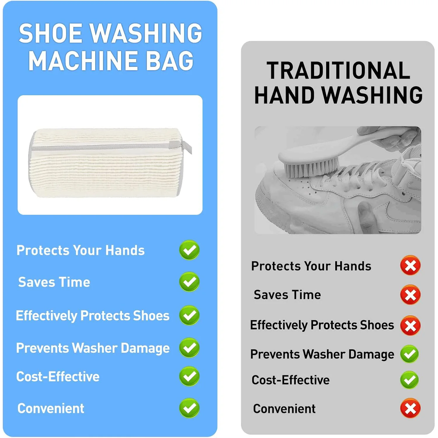 Nettoie efficacement les chaussures. Comparé au lavage à la main, l'utilisation d'un sac de lavage pour chaussures en machine permet de gagner du temps, d'améliorer l'efficacité et de libérer vos mains !