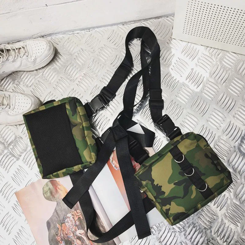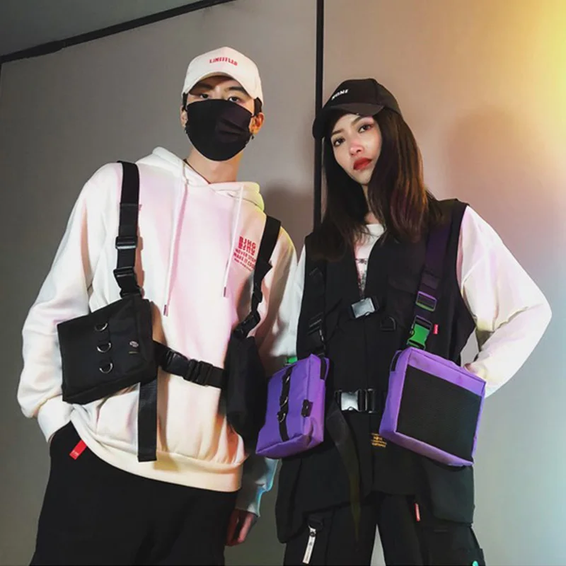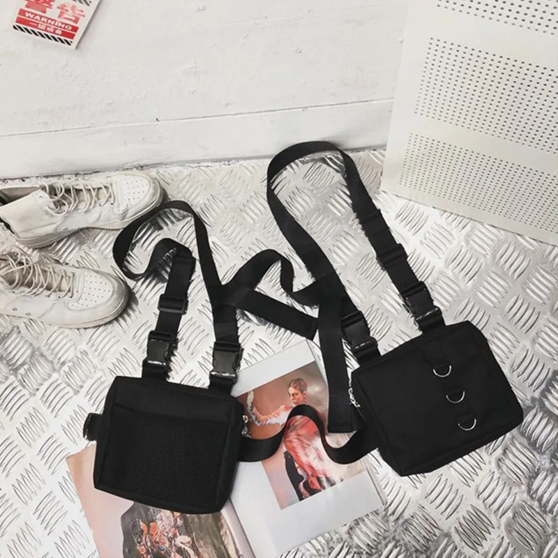 Sac de poitrine Hip Hop, sac banane tactique streetwear, sac gilet fonctionnel unisexe pour l'extérieur, sac de poitrine à harnais à deux poches, sac disco