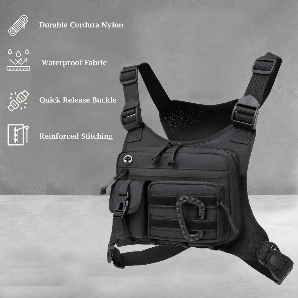 Bretelles réglables : avec des sangles entièrement réglables, le gilet de poitrine offre un ajustement confortable pour la plupart des types de corps, assurant stabilité et confort lors de vos aventures en plein air.En même temps, ce sac de poitrine est un compagnon idéal, garantissant que vos mains restent libres et vos affaires en sécurité.